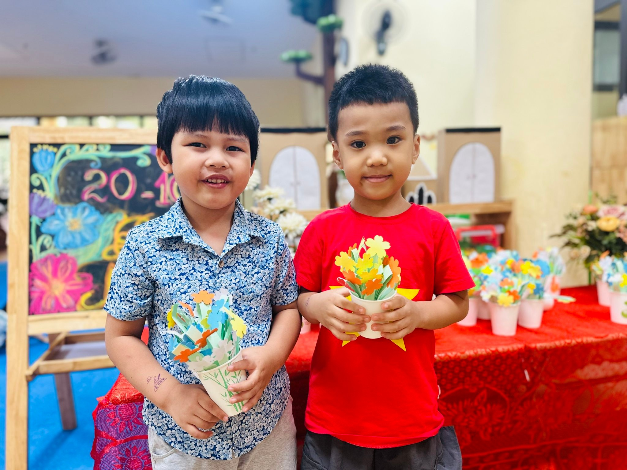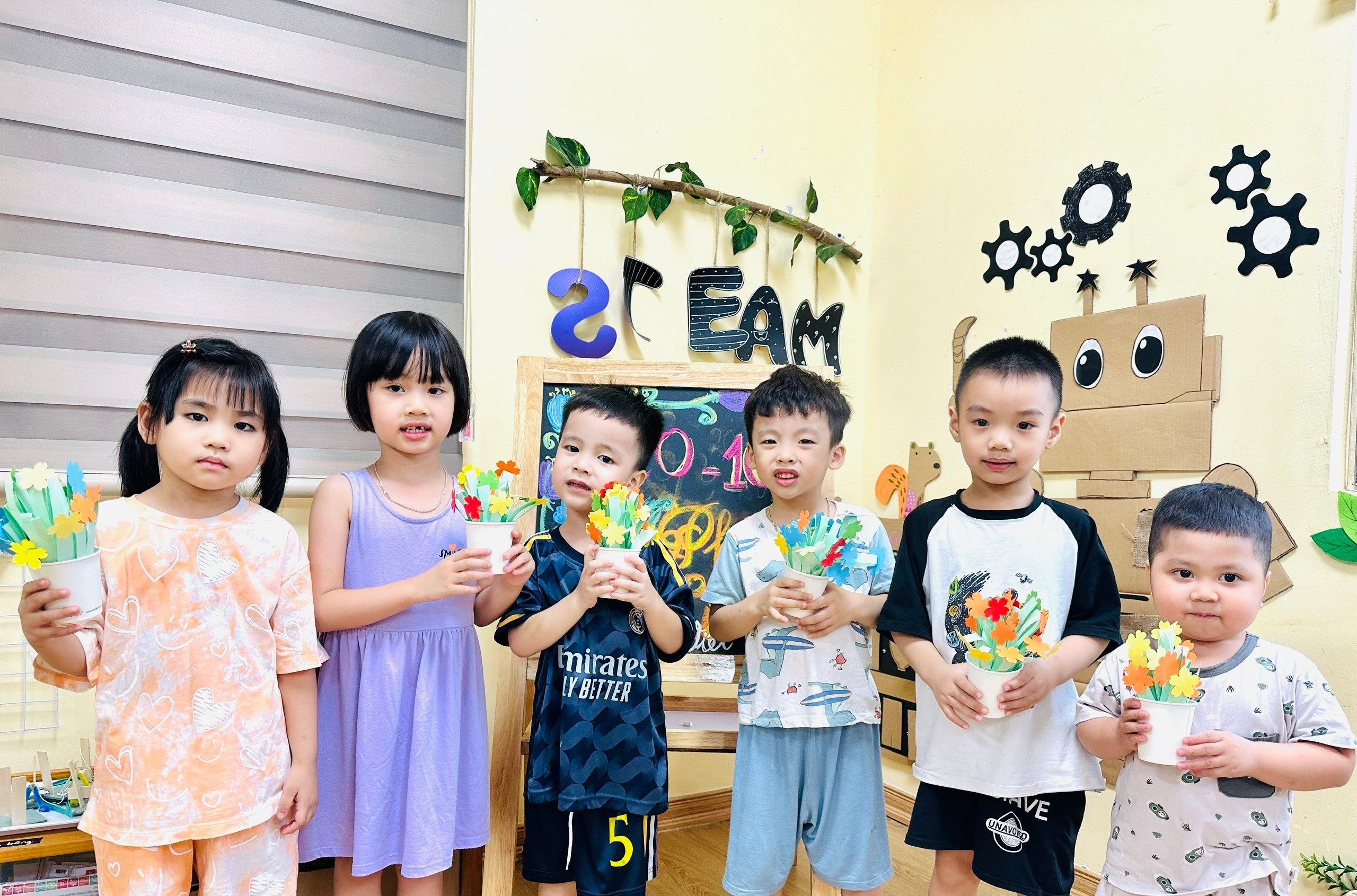 Các bé đã hoàn thành lọ hoa tặng Bà ,mẹ