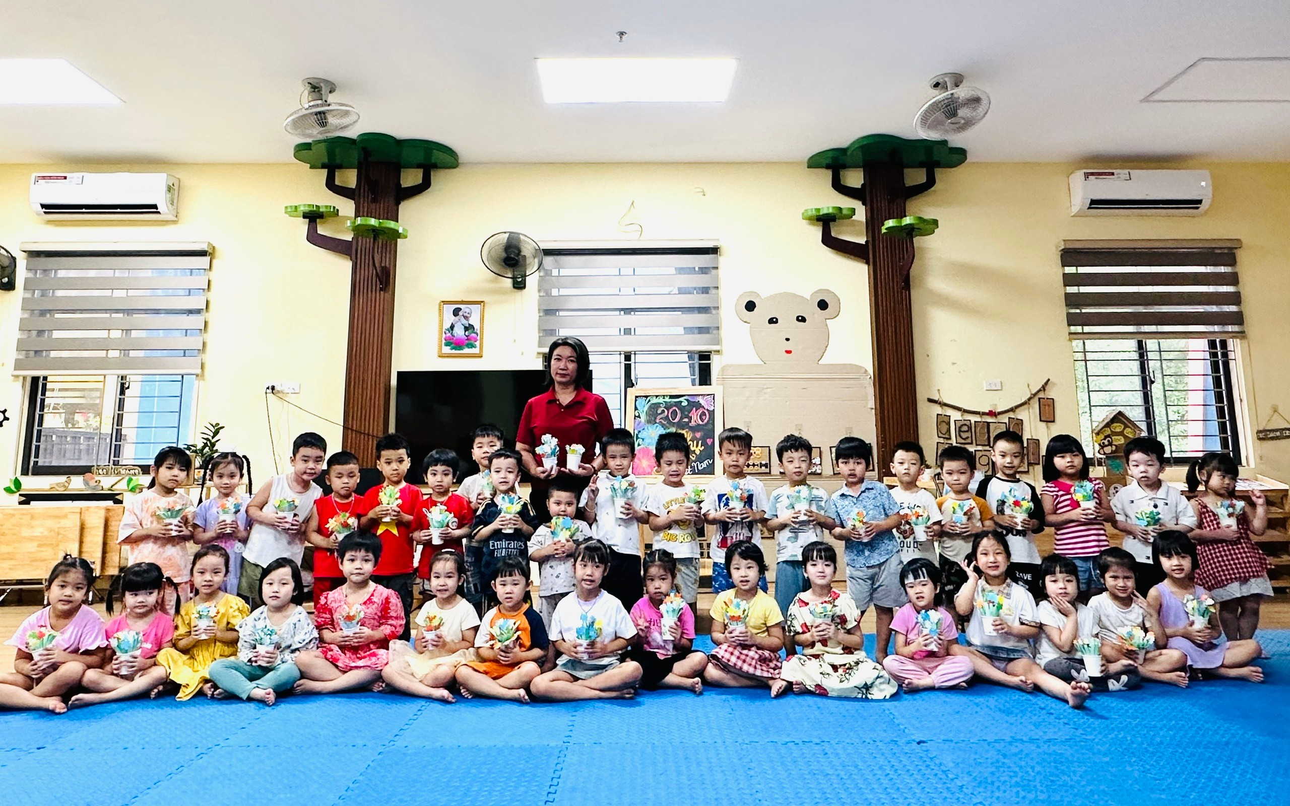 Thật tuyệt vời khi các con được tự chọn lựa nguyên liệu và cùng trải nghiệm sự sáng tạo của bản thân để tạo nên những lọ hoa, mang dấu ấn và tình cảm đặc biệt của các con dành cho bà và mẹ của mình . Những khoảnh khắc ý nghĩa và niềm vui trong quá trình sáng tạo luôn là kỷ niệm đẹp giữa cô  giáo lớp B2 và các  con thân yêu.