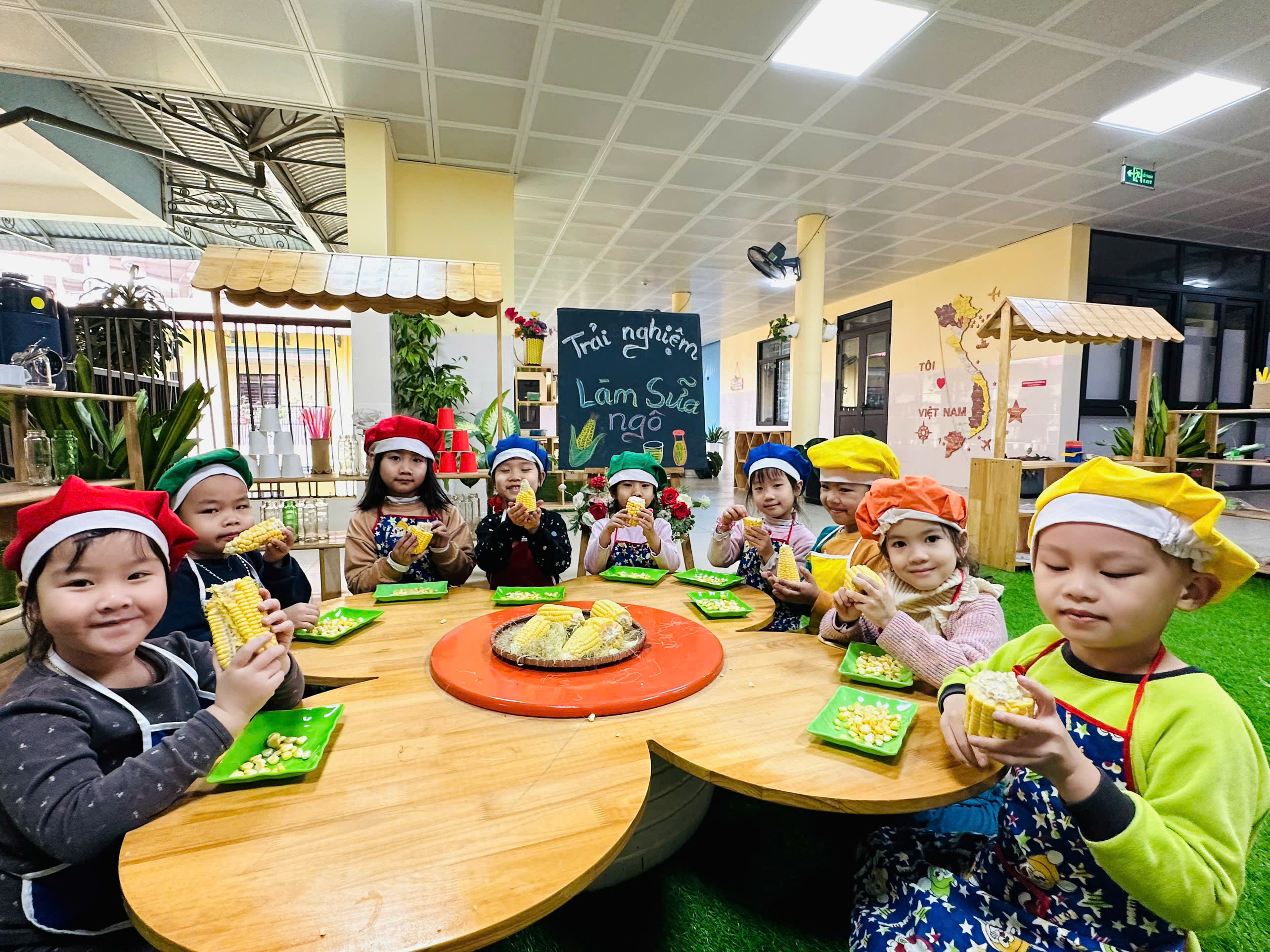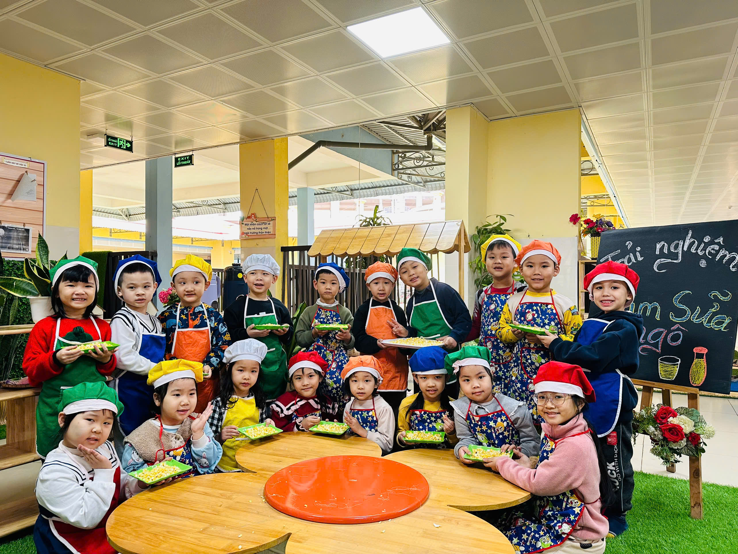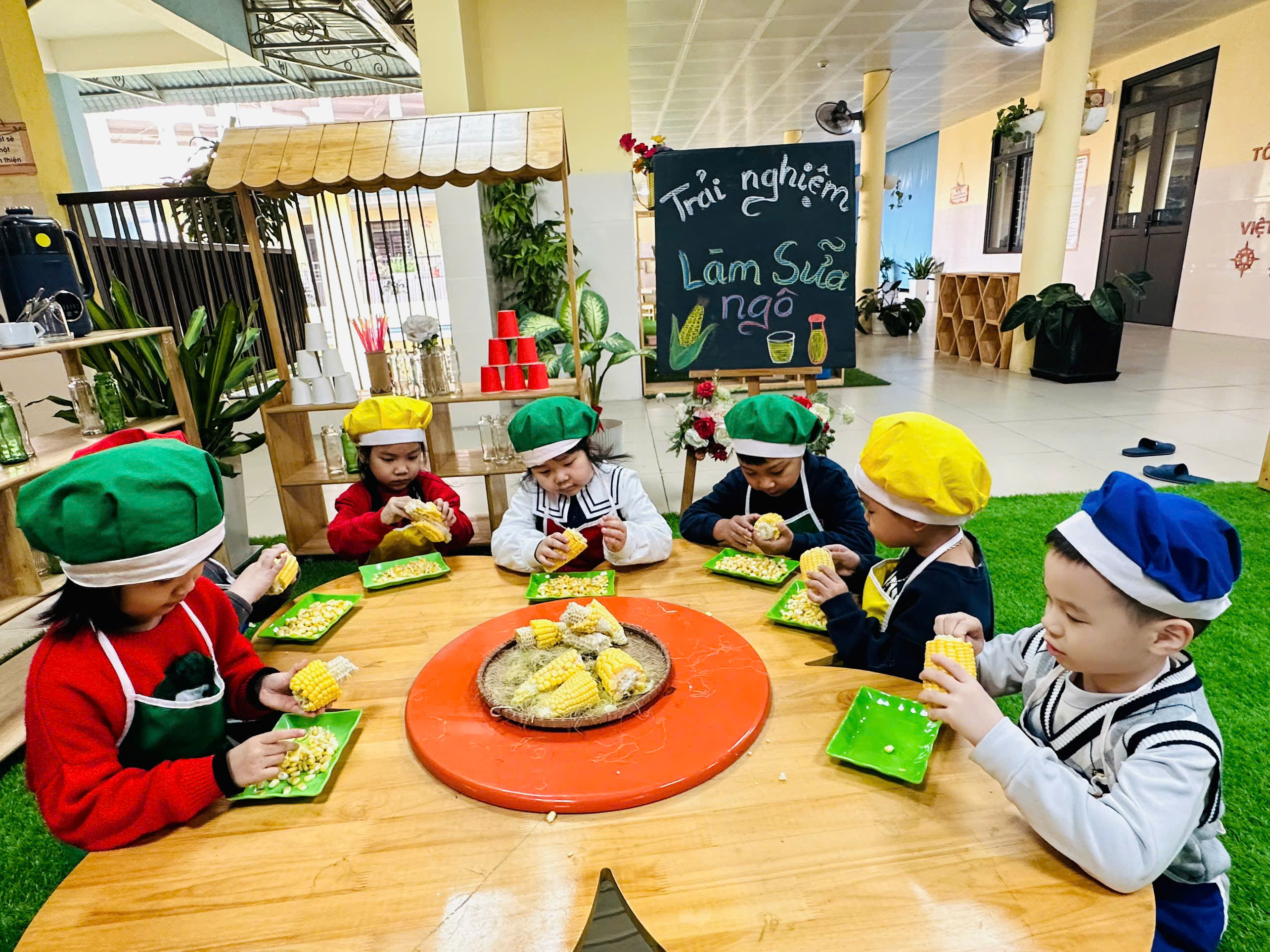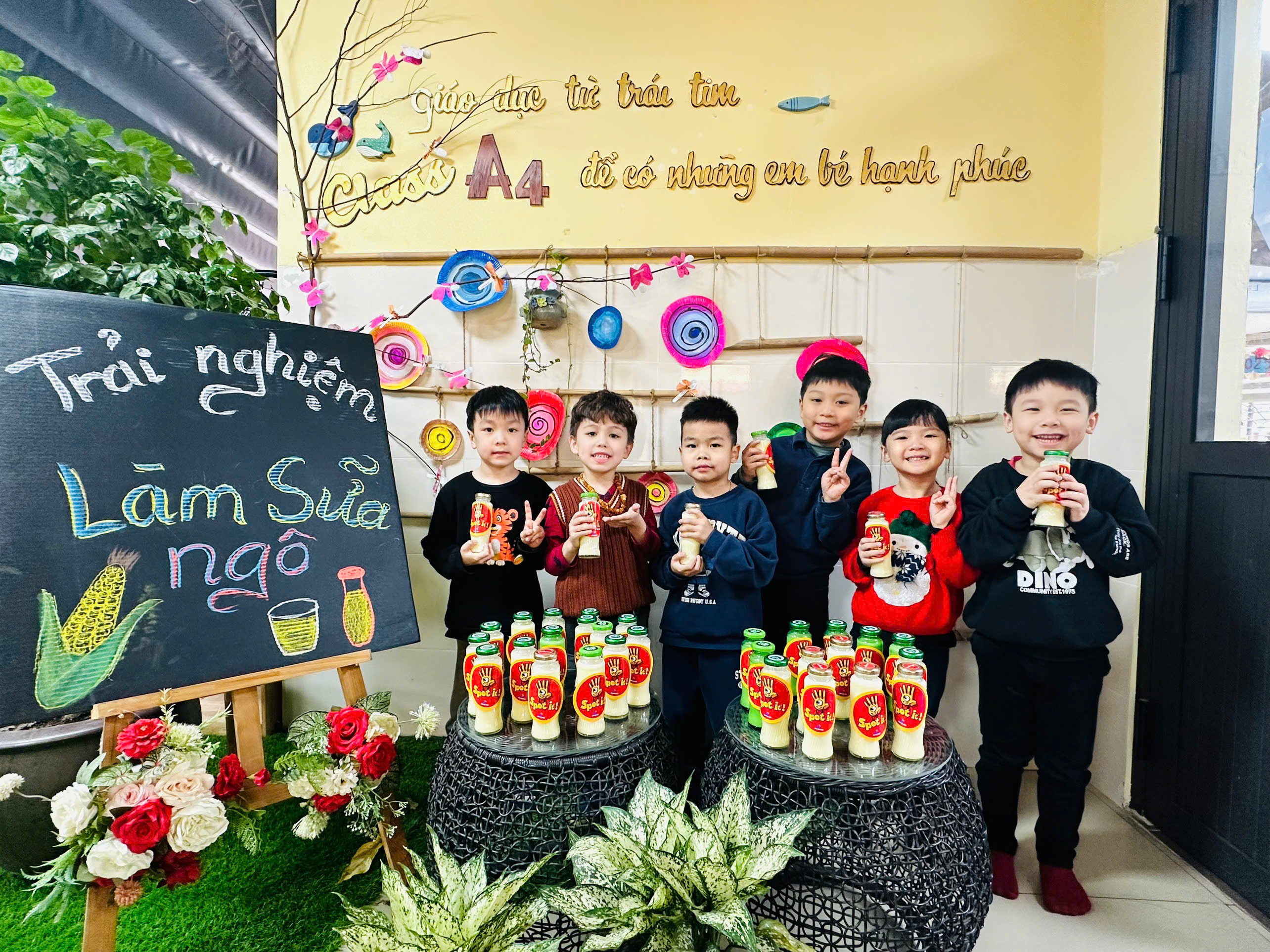 Sữa ngô là thức uống dinh dưỡng rất tốt cho sức khoẻ. Với những nguyên liệu rất gần gũi với trẻ như: Ngô ngọt, sữa tươi, sữa đặc, nước lọc, máy làm sữa hạt , cốc giấy. Các bé lớp mẫu giáo A4 được cô hướng dẫn và tự tay làm những cốc sữa ngô thơm ngon, béo ngậy. Những đôi mắt xinh chăm chú, háo hức cùng bàn tay khéo léo, các con cùng cô chuẩn bị nguyên liệu,rửa ngô, tách hạt ngô và cho các nguyên liệu vào máy làm sữa hạt để tạo nên những cốc sữa ngô thơm ngon nóng hổi và hào hứng thưởng thức thành quả do chính mình làm ra. Bố mẹ cùng nhìn lại các hình ảnh của các bé trong buổi trải nghiệm thú vị này nhé!
