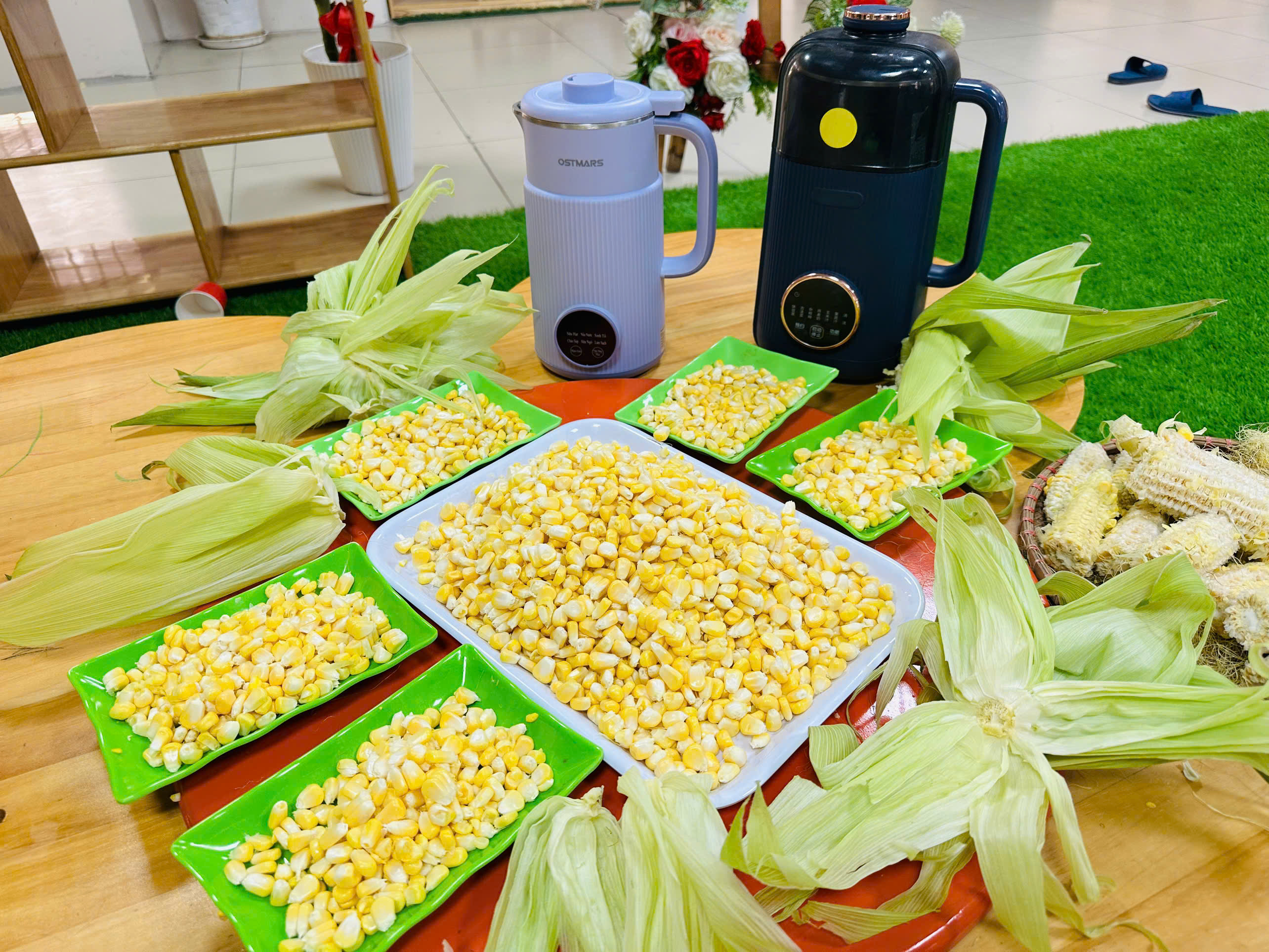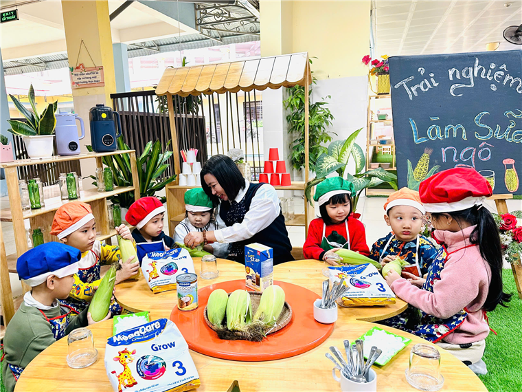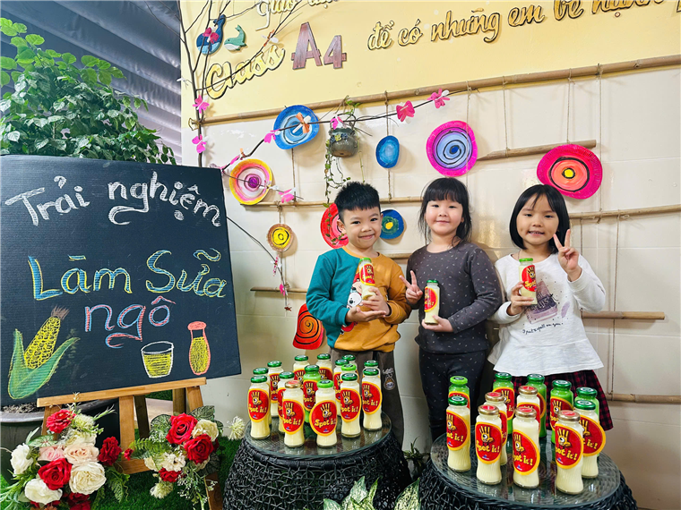 Mời bố mẹ cùng thưởng thức sữa ngô cùng các bé