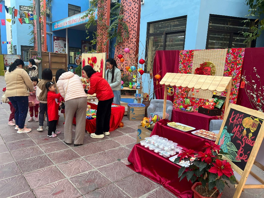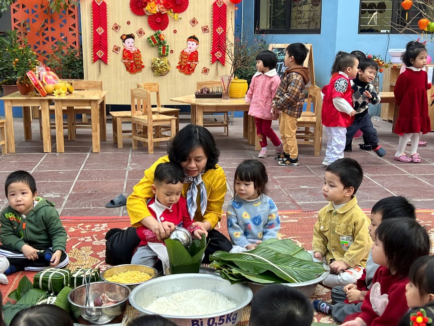 Mỗi năm, cứ đến cận kề ngày Tết cổ truyền của dân tộc thì người người, nhà nhà đều nô nức sắm sửa chuẩn bị đón tết và không quên trang trí ngôi nhà của mình bằng những cành đào, bình hoa. Và hơn hết là gói những chiếc bánh chưng, trải nghiệm mua sắm tại các gian hàng thật ý nghĩa và thú vị. Hôm nay các em bé mẫu giáo bé C1 được trải nghiệm ngày Tết cổ truyền tại ngồi trường thân yêu của mình.