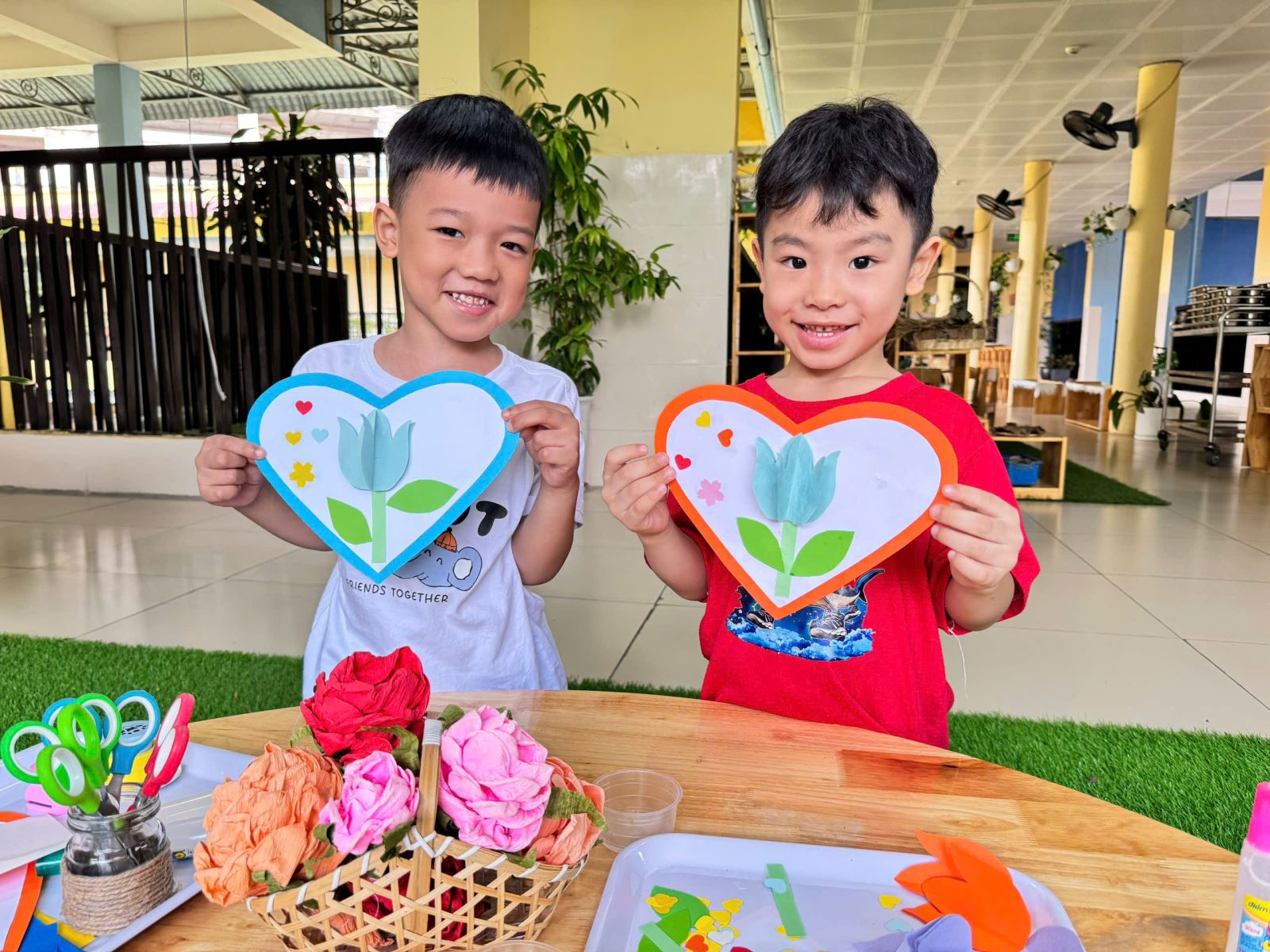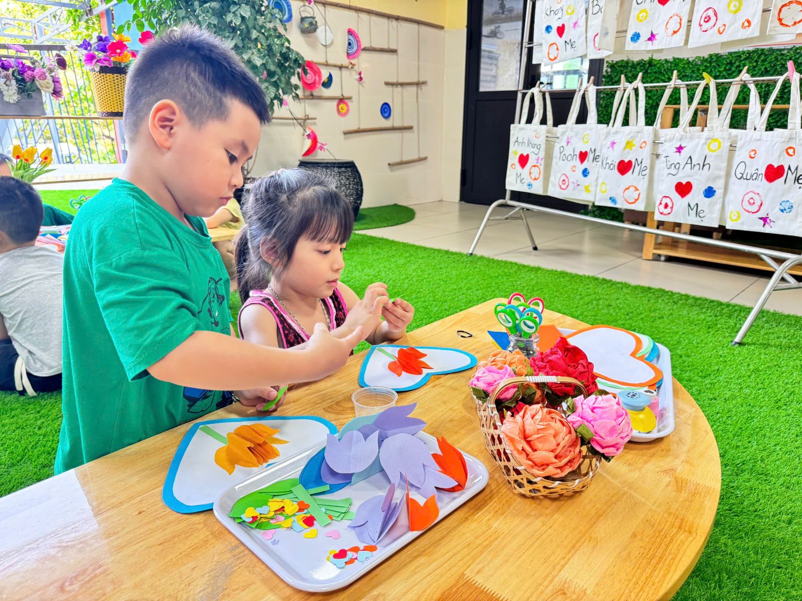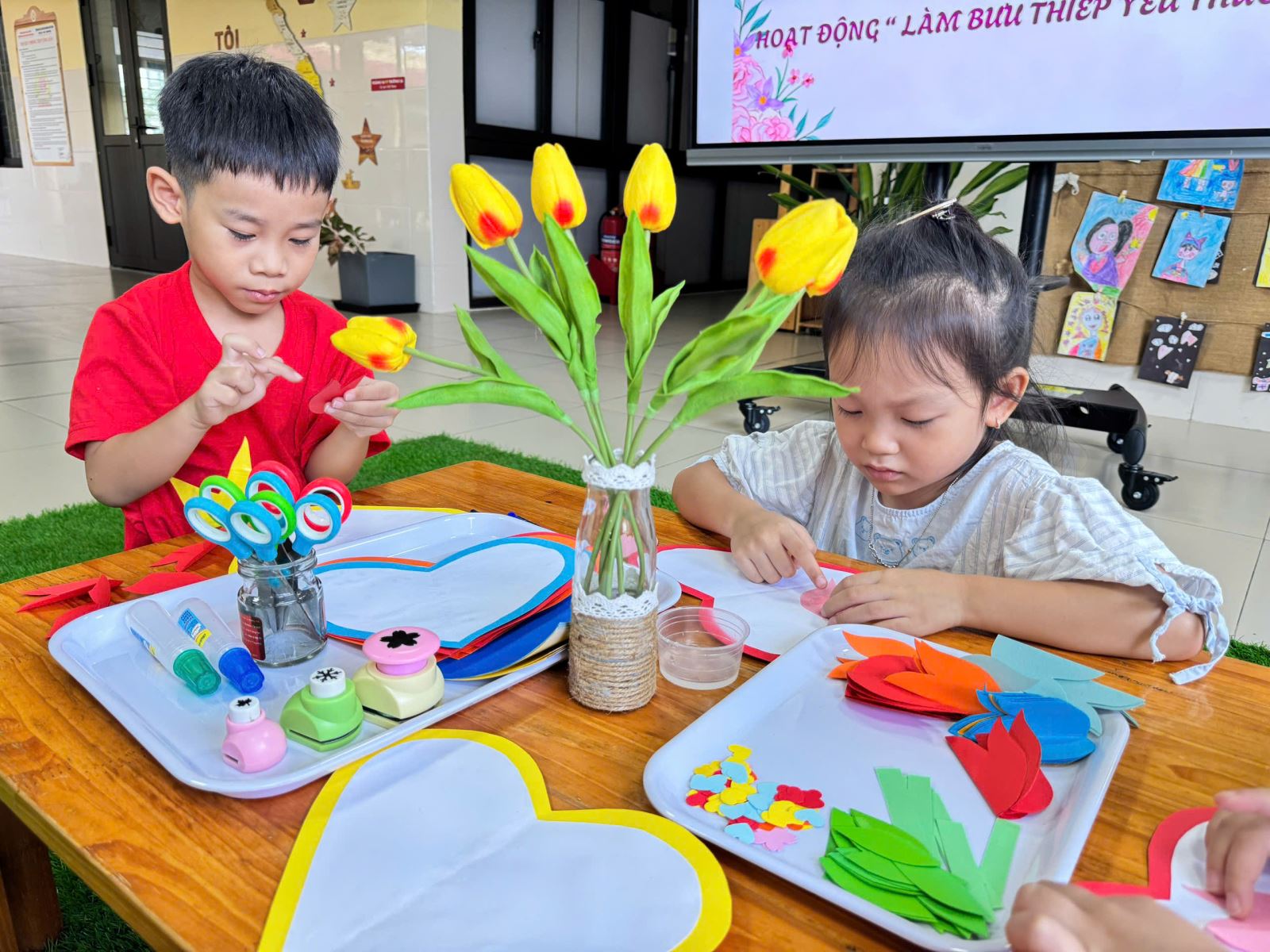 🎁Ngày phụ nữ Việt Nam 20.10 đang đến rất gần, các con lớp mẫu giáo lớn A3 đã cùng nhau làm những tấm bưu thiếp như một lời chúc, lời biết ơn chân thành nhất để gửi tặng cho mẹ của mình. Những đôi bàn tay bé xíu, vụng về nhưng chan chứa tình cảm. Ánh mắt các con ánh lên niềm vui, sự háo hức khi tự tay trang trí tấm bưu thiếp thật đẹp. Bên cạnh đó, các con còn được học cách nói lời yêu thương với mẹ, biết bày tỏ cảm xúc và thể hiện tình cảm bằng hành động cụ thể. "Con tặng mẹ hay Con yêu mẹ nhiều lắm!" - Câu nói tuy nhỏ bé nhưng là bài học lớn về tình yêu, sự biết ơn và lòng trân trọng. Hoạt động không chỉ giúp các con phát triển kỹ năng mà còn ươm mầm trong tâm hồn các con những cảm xúc đẹp, nhân ái và sẻ chia - điều mà các cô và nhà trường luôn hướng tới.