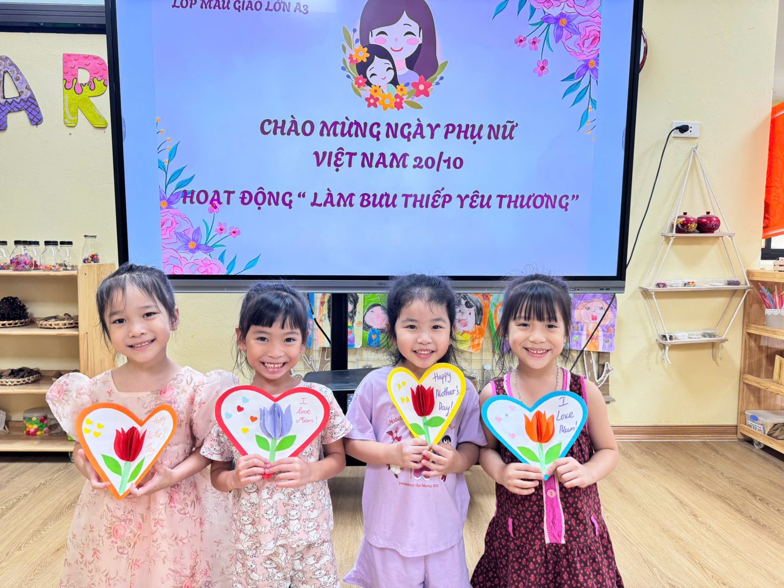 Các bé lớp mẫu giáo lớn A3 chào mừng ngày Phụ Nữ Việt Nam 20/10 với hoạt động trải nghiệm "Bưu thiếp yêu thương"