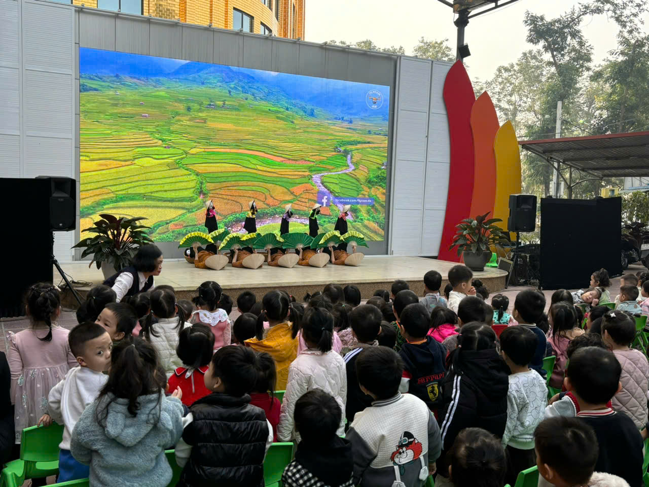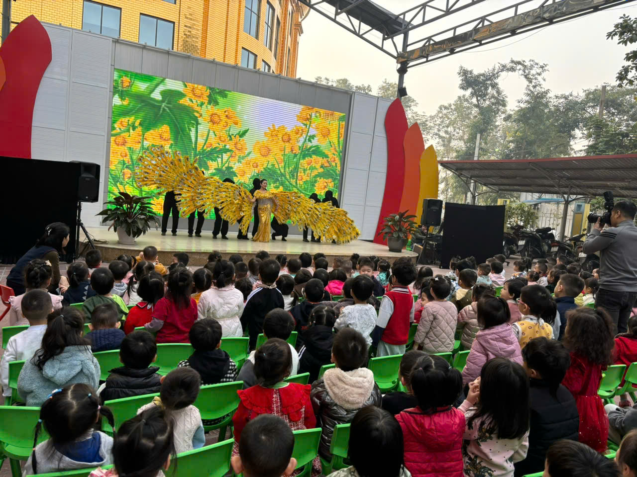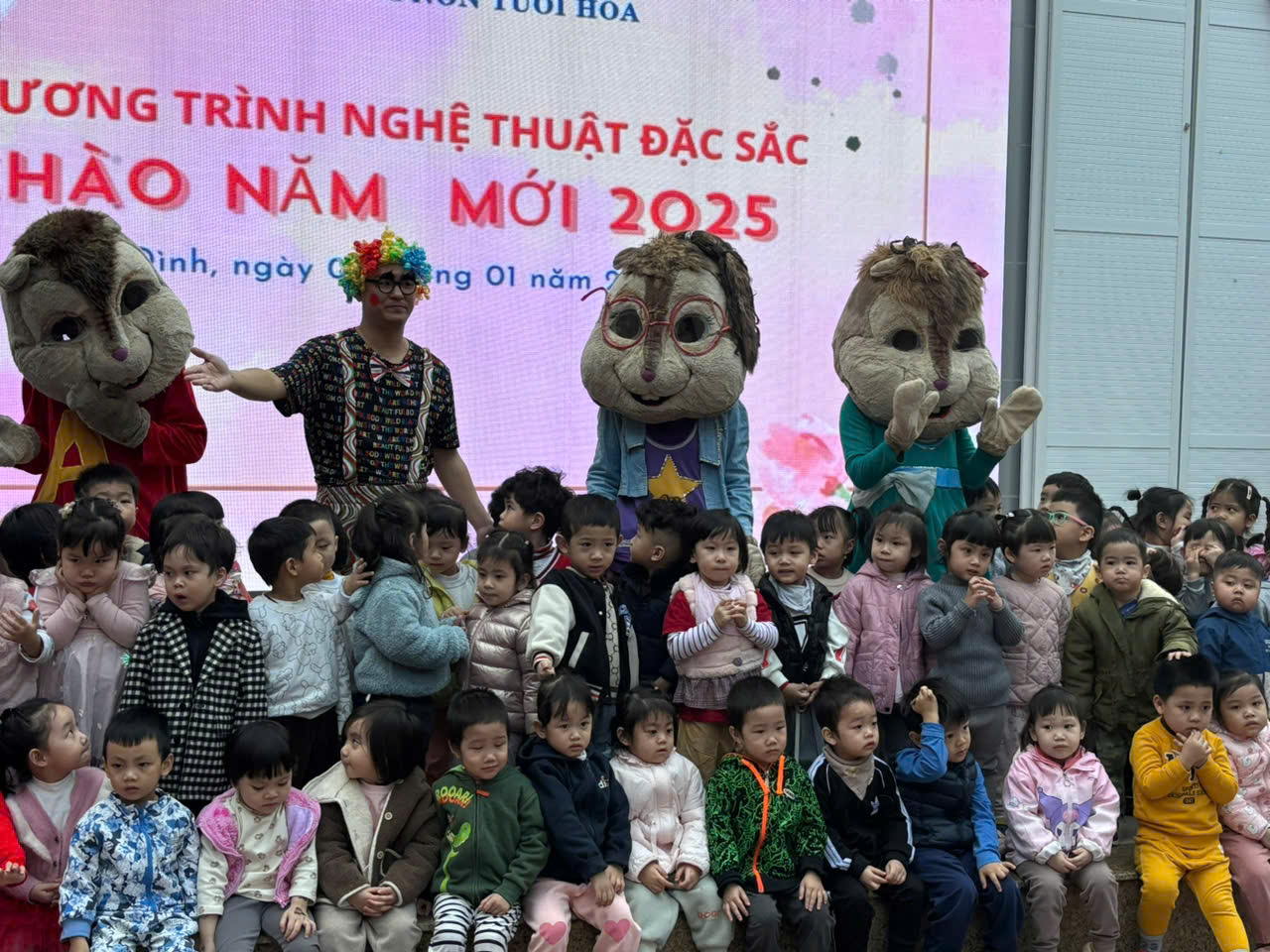 Hòa chung không khí tưng bừng đón năm mới 2025 , sáng nay ngày 2/1/2025  trường mầm non Tuổi Hoa đã tổ chức Chương trình nghệ thuật đặc sắc chào đón năm mới 2025  cho học sinh toàn trường . Chương trình đã mang lại niềm vui, tiếng cười và niềm hân hoan cho các bé lớp MGB C3. Các bé được nghe một số tiết mục chào xuân đặc sắc của các nghệ sĩ nổi tiếng , đặc biệt các bé còn lần đầu tiên được tiếp cận với nghệ thuật múa rối với rất nhiều tiết mục đặc sắc do các nghệ sĩ của nhà hát múa rối trung ương trình bày .Buổi biểu diễn với nhiều nhân vật rối độc đáo, đã khiến các bạn nhỏ vô cùng thích thú.