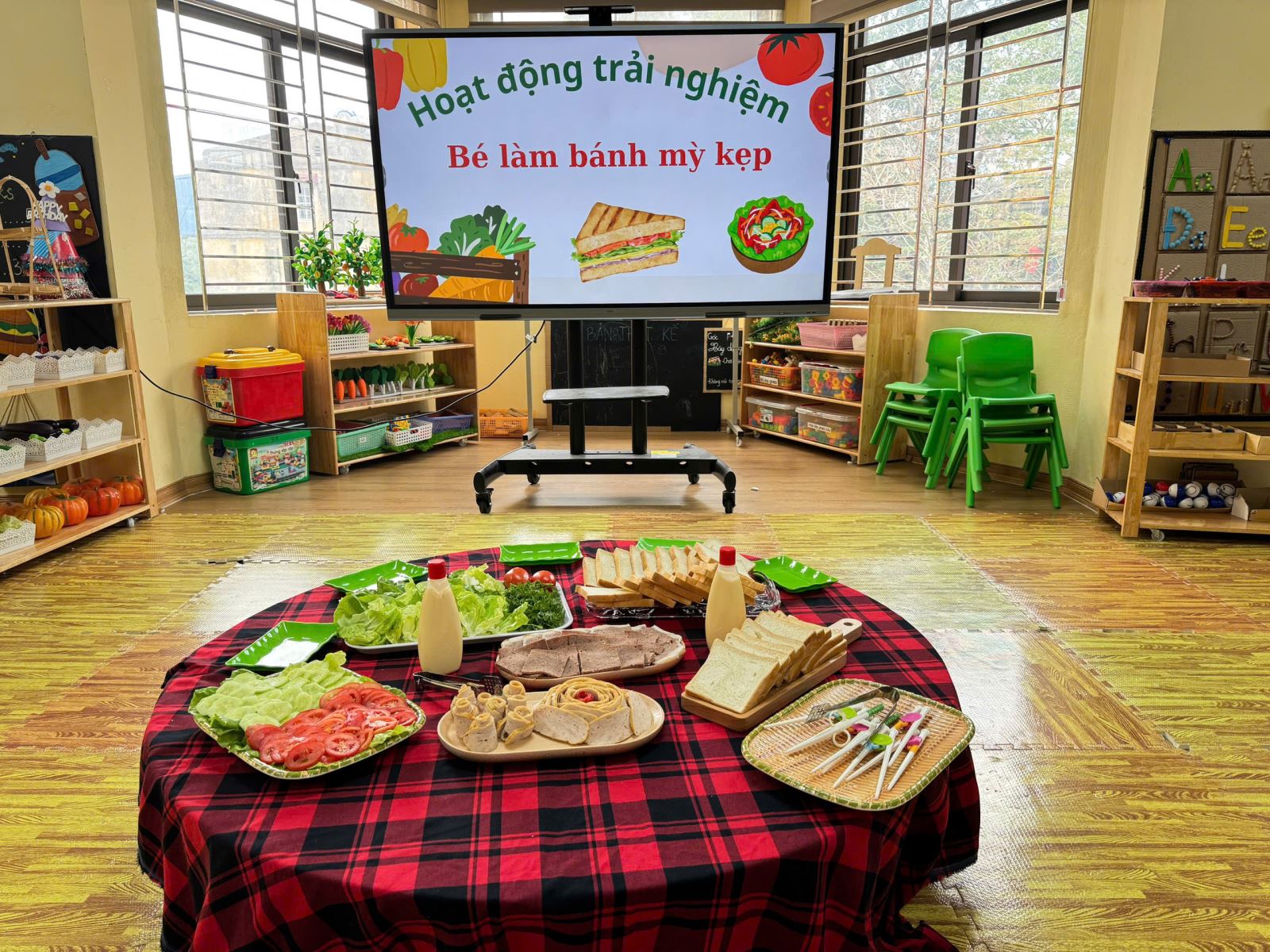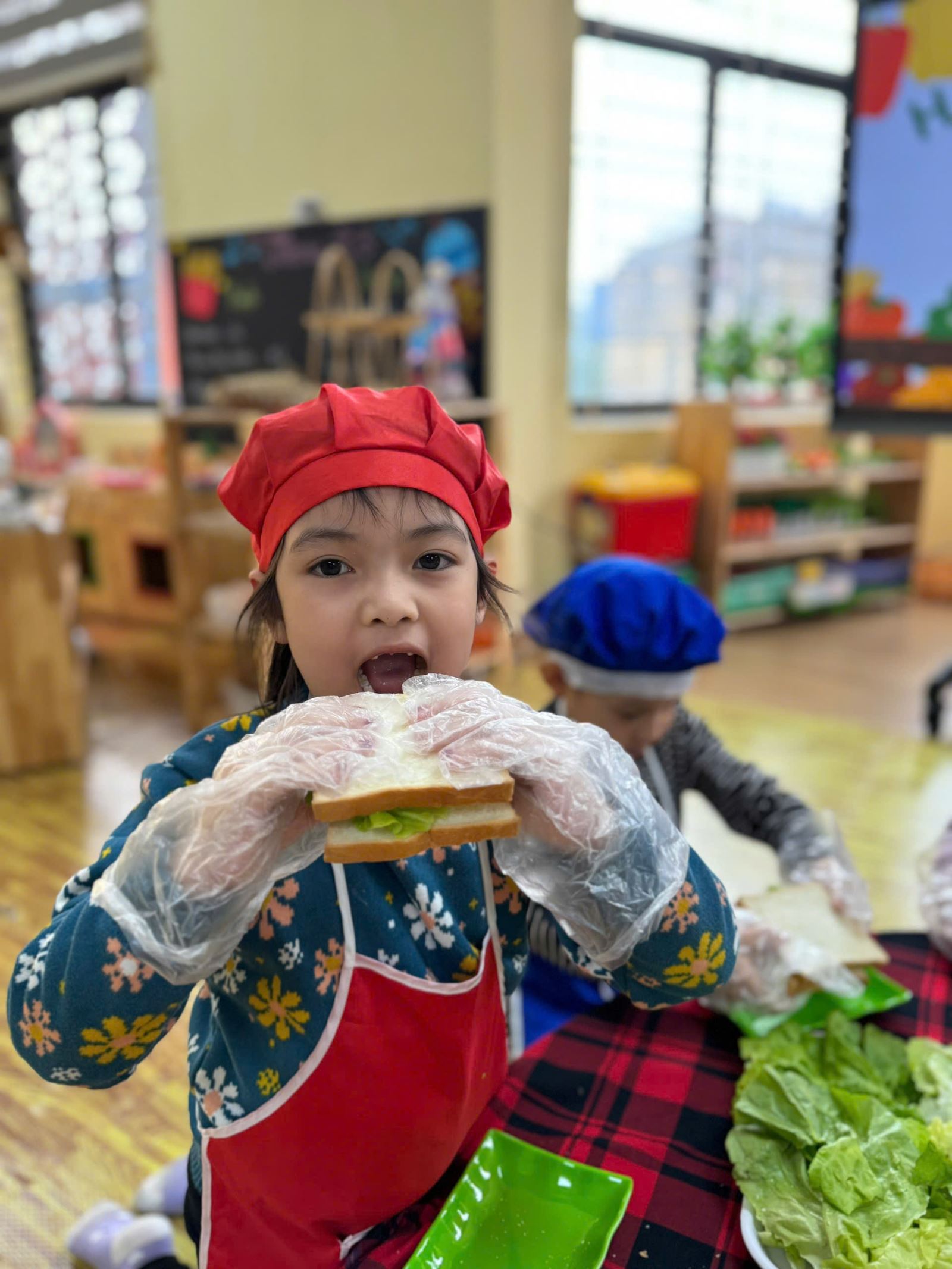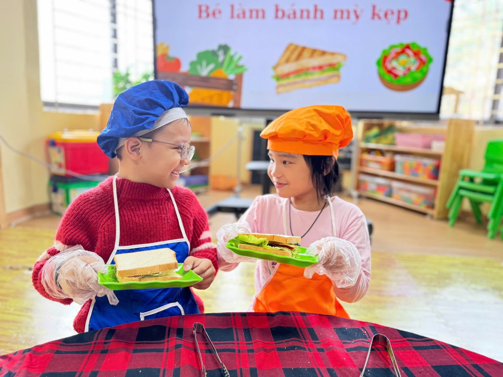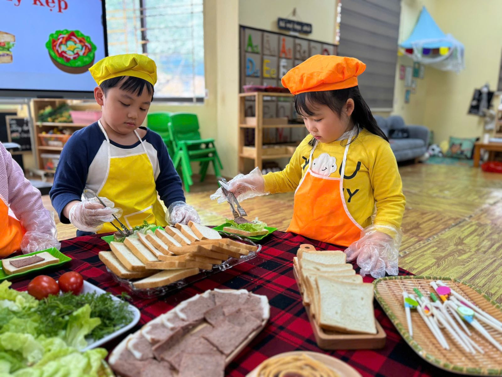 Các bé lớp MGL A3 trường mầm non Tuổi Hoa trổ tài làm bánh mỳ kẹp pate