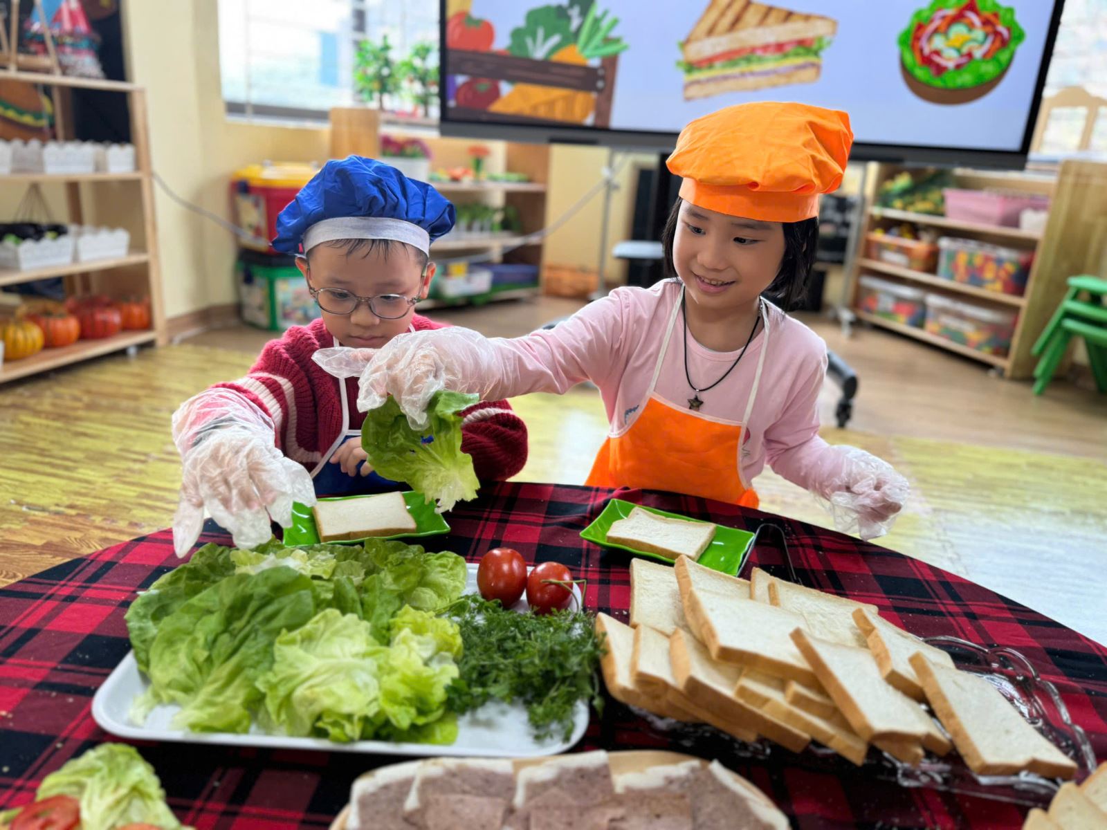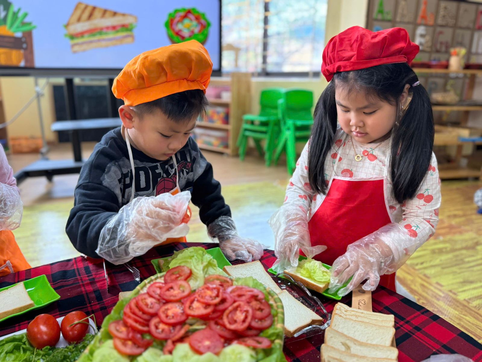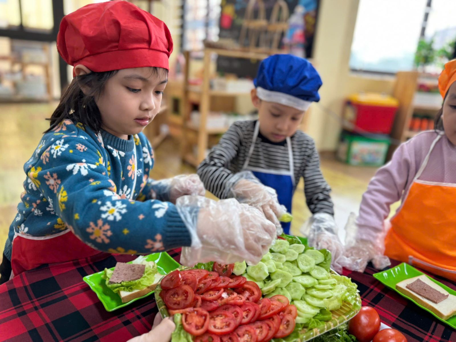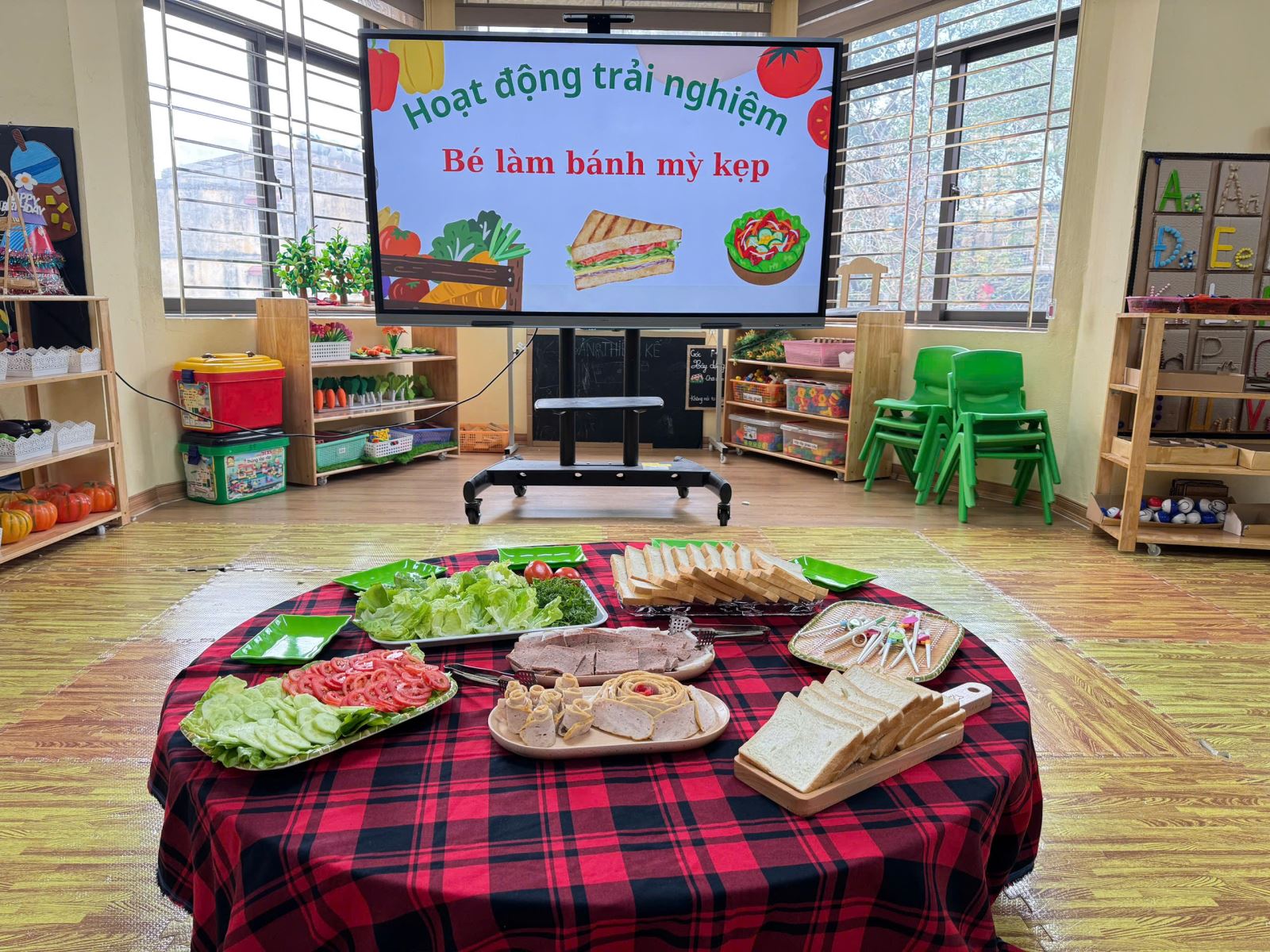 Các bé lớp MGL A3 trường mầm non Tuổi Hoa trổ tài làm bánh mỳ kẹp pate