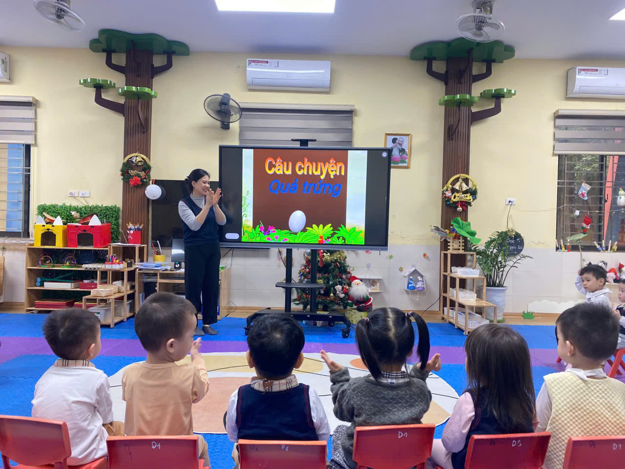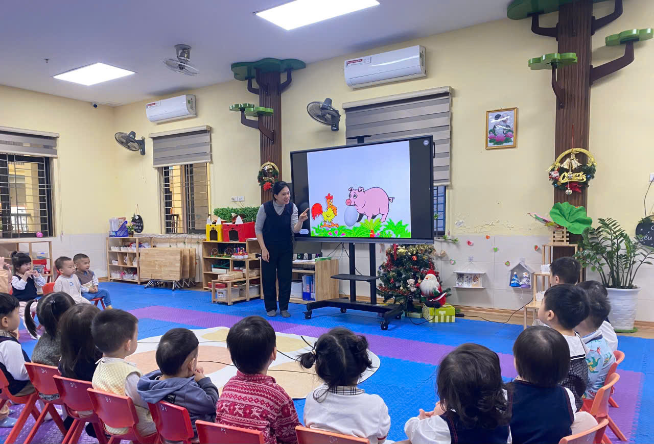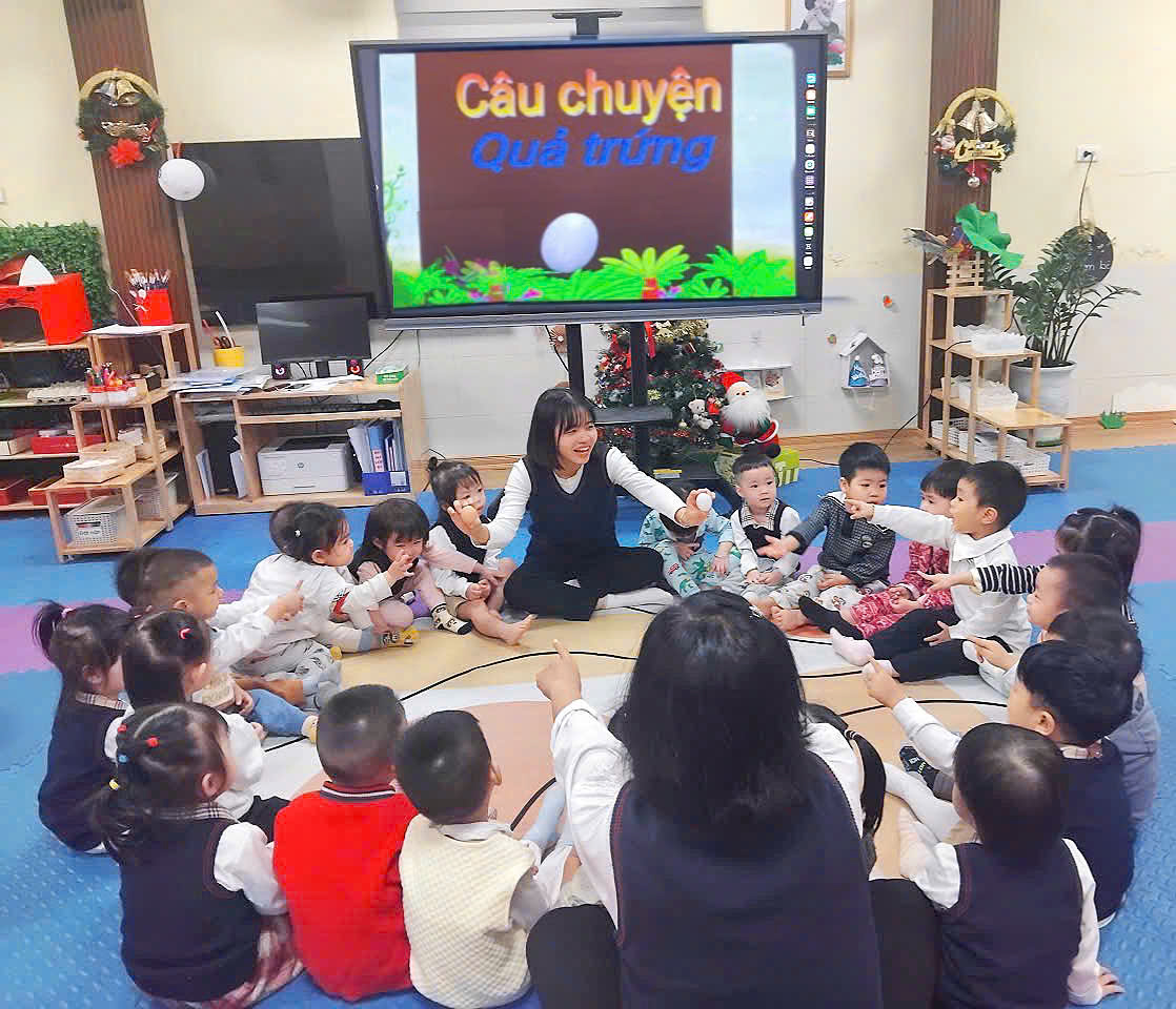 Cô giáo giới thiệu cho các bé về câu chuyện "Quả trứng"