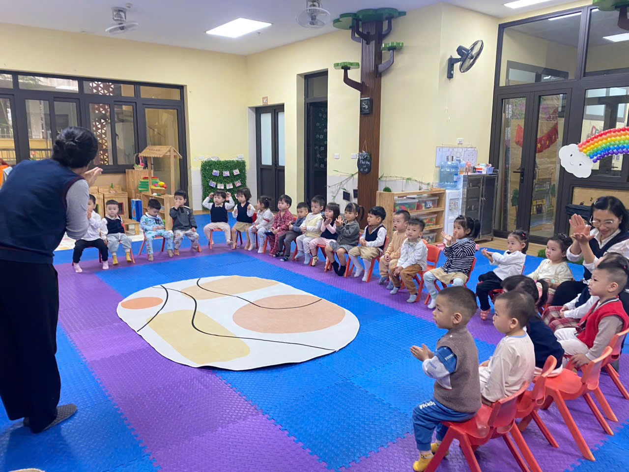 Các bé rất hào hứng nghe lắng nghe cô giáo kể chuyện