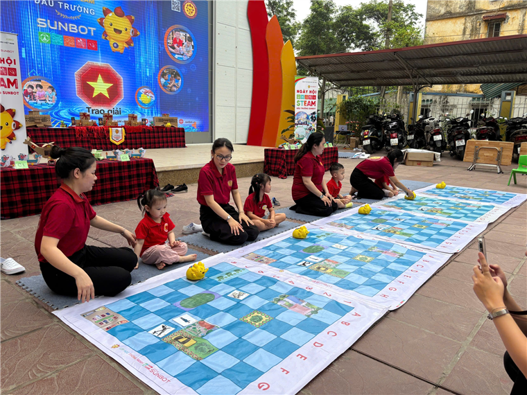 Hôm nay, lớp mẫu giáo bé C1 đã có một trải nghiệm thật đáng nhớ khi tham gia Ngày hội SUNBOT với hoạt động “Làm và đua thuyền rồng” – hướng về kỷ niệm 30/4 – Giải phóng miền Nam, thống nhất đất nước. Dưới sự hướng dẫn của cô giáo, các bé lớp C1 đã cùng nhau sáng tạo nên những chiếc thuyền rồng nhỏ xinh từ các vật liệu đơn giản như giấy màu, bìa cứng, pin và bánh xe. Mỗi chiếc thuyền đều được trang trí với sắc màu rực rỡ, thể hiện nét ngộ nghĩnh, sáng tạo và tinh thần dân tộc mạnh mẽ. Hoạt động đua thuyền rồng diễn ra đầy sôi nổi và vui nhộn. Các bé lần đầu tiên được trải nghiệm cảm giác đua thuyền, các con đã cổ vũ hết mình cho chiếc thuyền của lớp mình “lướt nhanh như gió”.