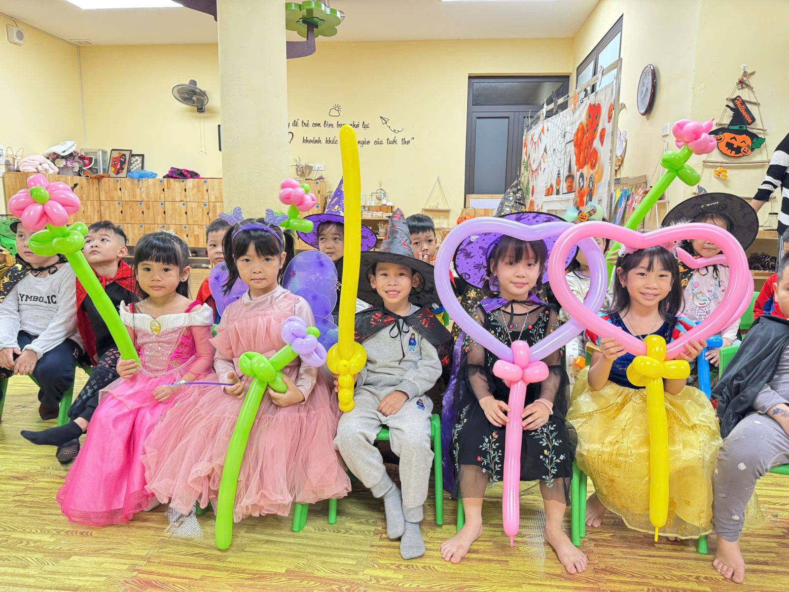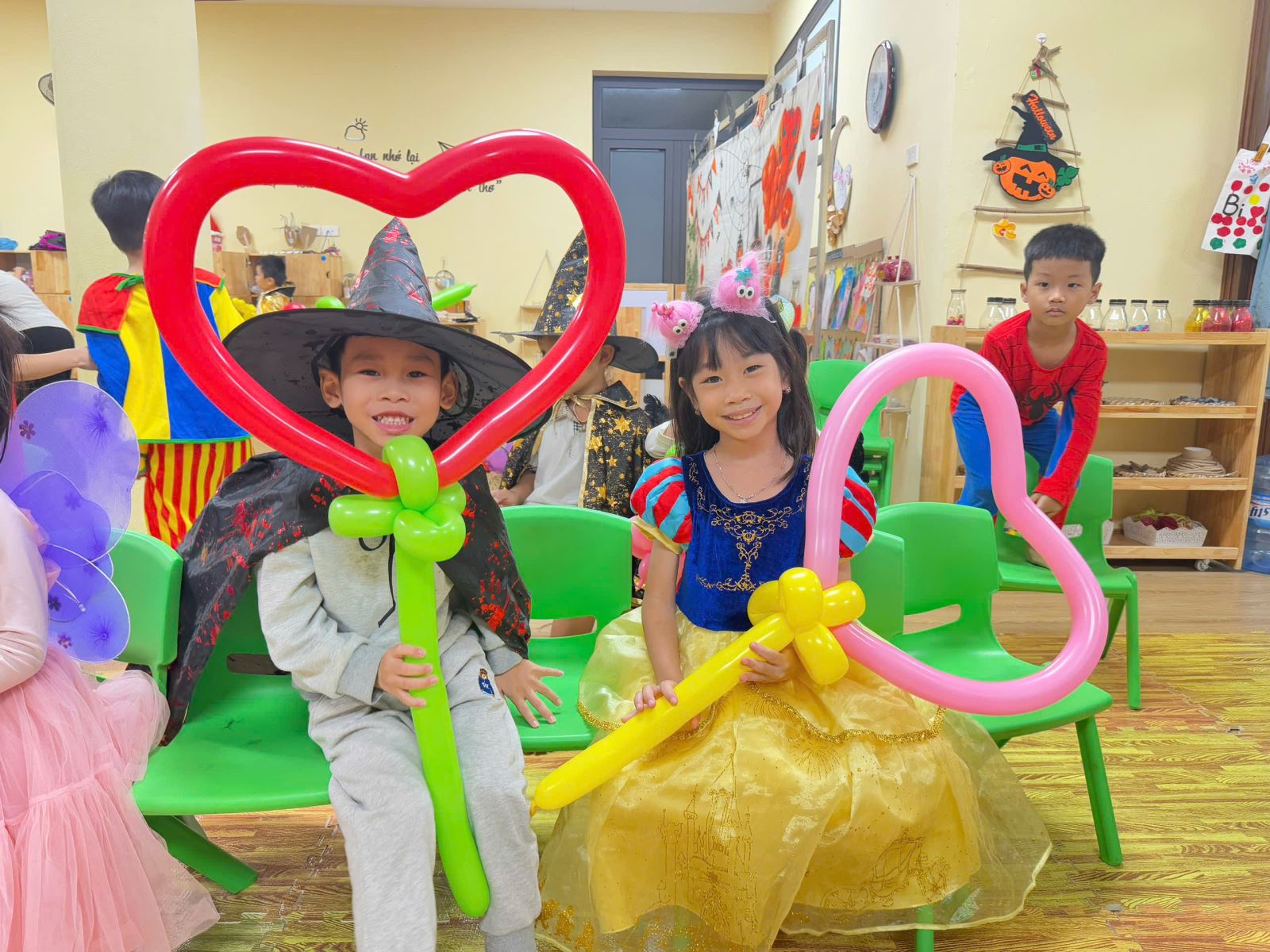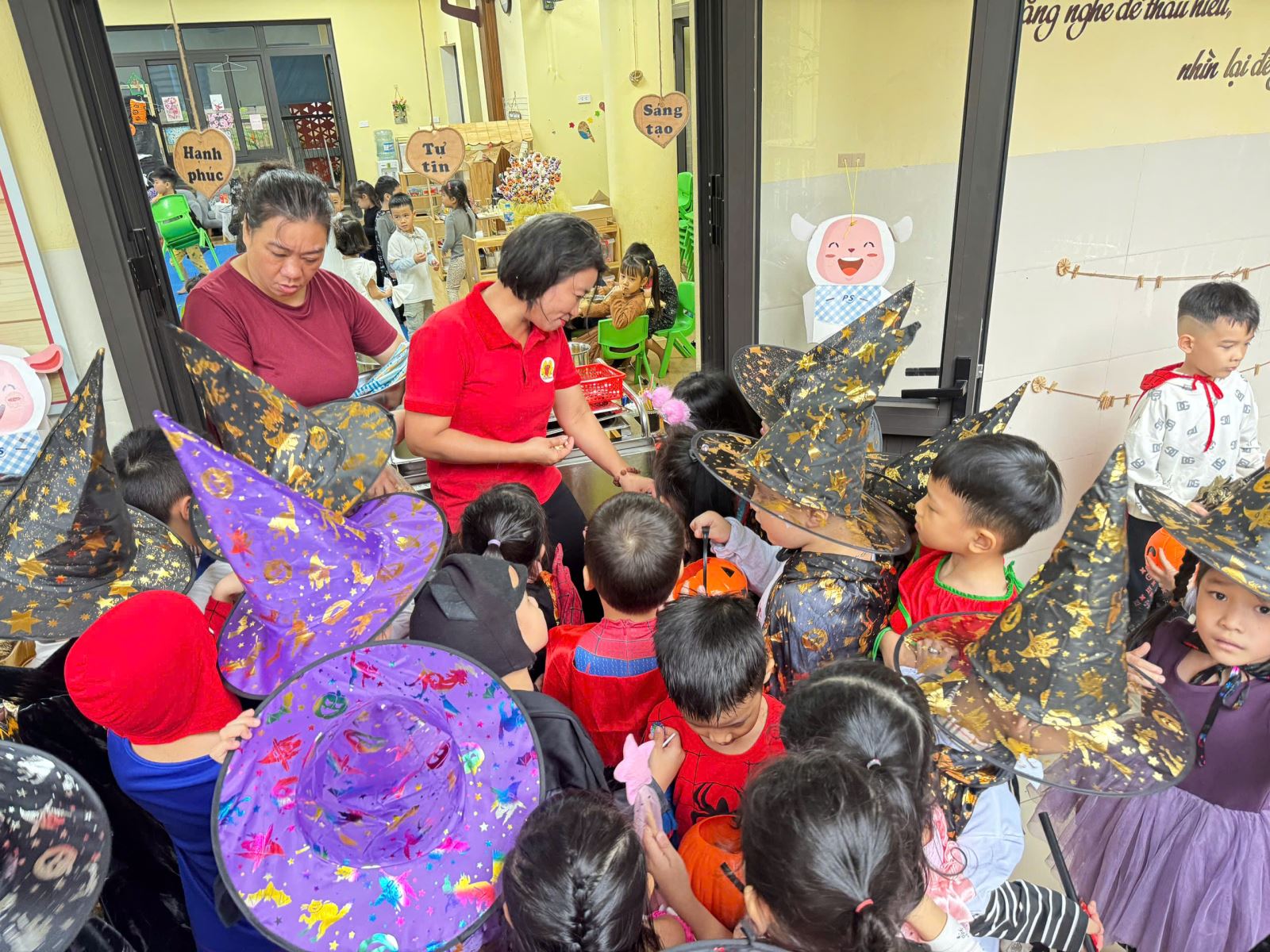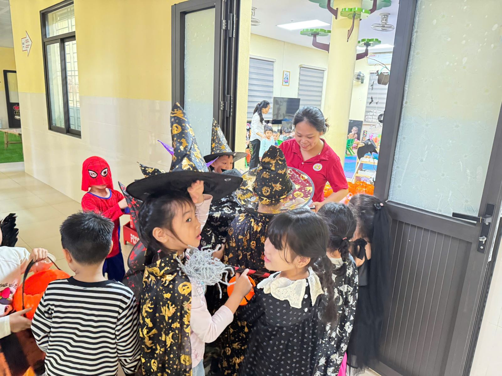 Trong không gian lớp học rực rỡ sắc màu, các con check-in thật đáng yêu, lưu giữ từng khoảnh khắc nhí nhảnh, ngộ nghĩnh và dễ thương. Các bạn nhỏ còn được đi xin kẹo ở phòng bác Hiệu trưởng, ghé thăm các lớp bạn và nhận về vô vàn những phần quà ngọt ngào với nhiều tiếng cười, niềm vui sướng 🍭🍬. Không khí càng thêm sôi động khi các con giao lưu cùng chú hề vui nhộn, tham gia những trò chơi đầy bất ngờ 🎈.