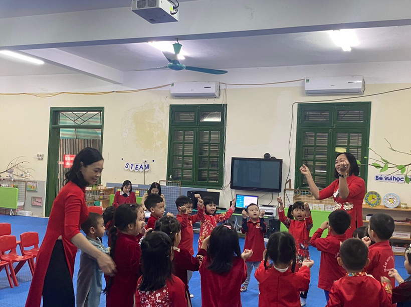 Trong tuần lễ hưởng ứng này cô giáo, các bạn nhỏ lớp B1 đã cùng nhau tham gia và giúp trẻ hiểu ý giá trị văn hóa của áo dài nét đẹp truyền thống của Việt Nam.