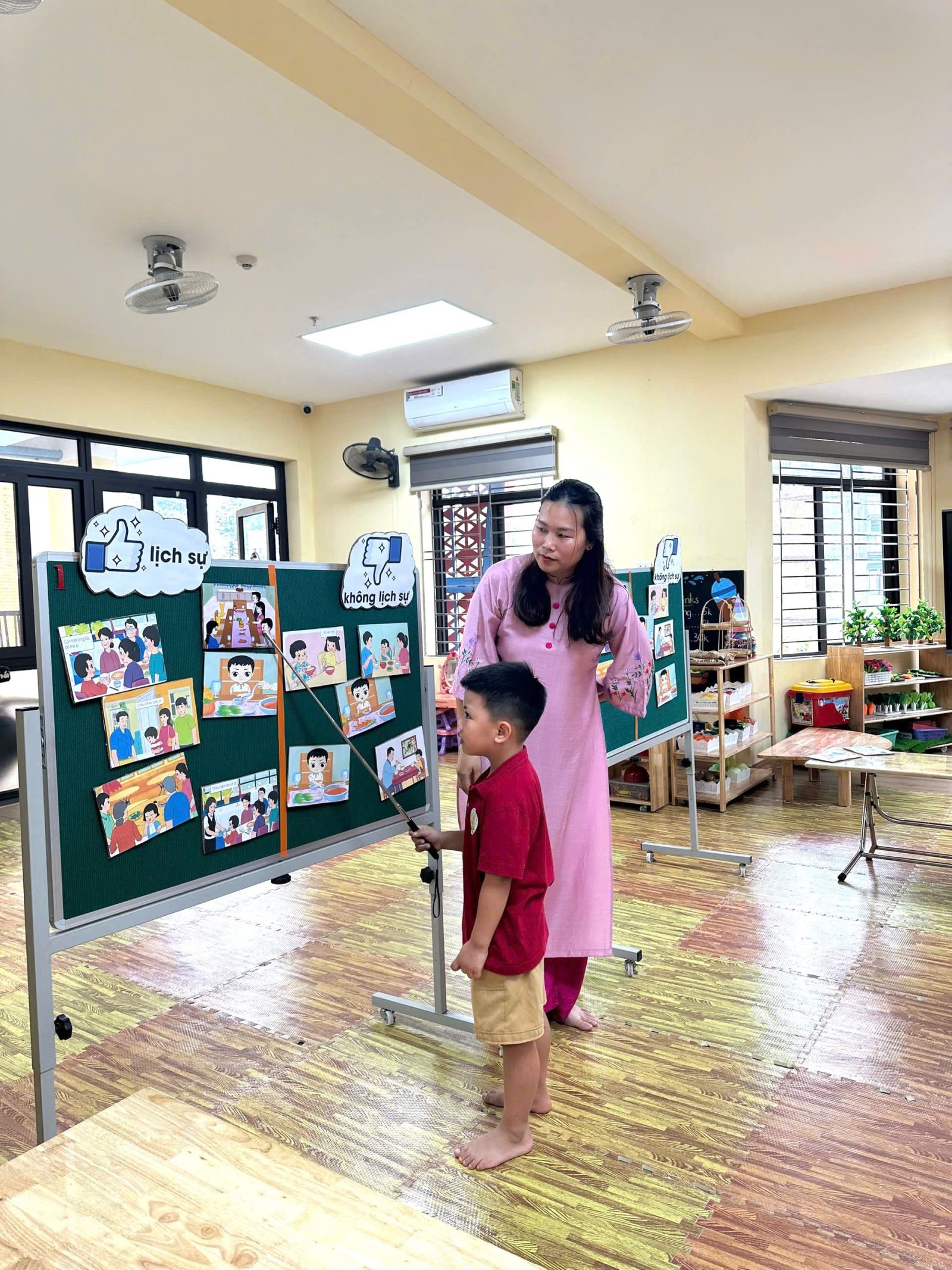 Cô giáo Thu Trang tham dự hội thi Giáo viên giỏi cấp trường với hoạt động khám phá "Ứng xử văn minh khi đi dự tiệc"