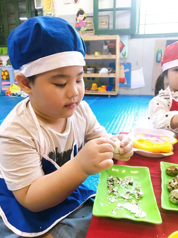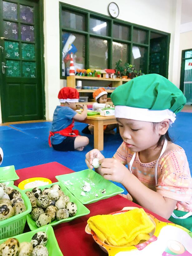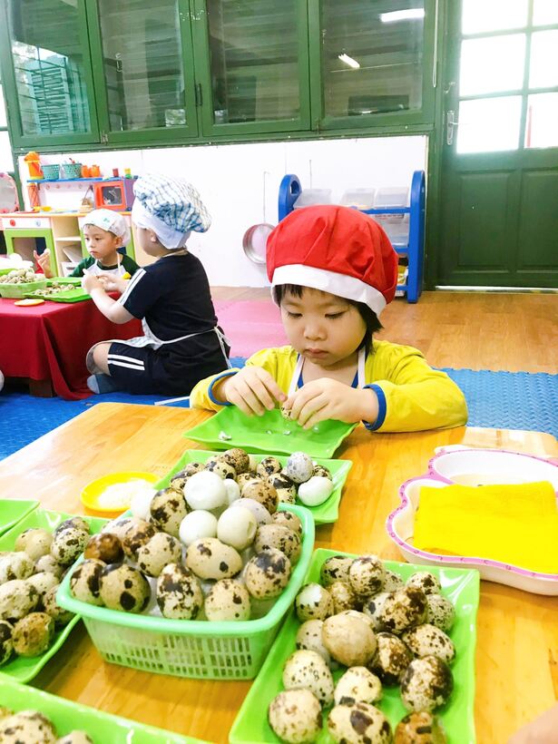 Cùng tham gia hoạt động trải nghiệm "Bóc trứng chim cút" với các bạn nhỏ lớp B3 nào!
