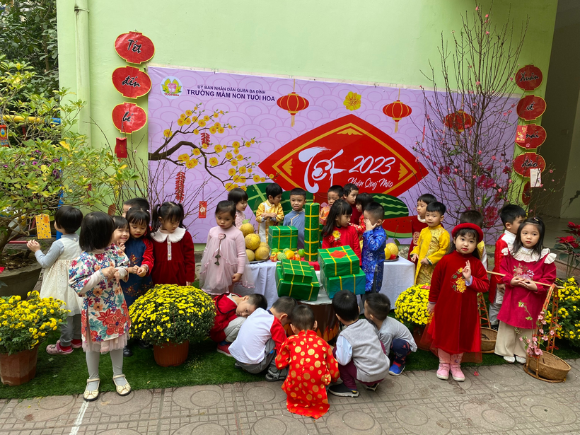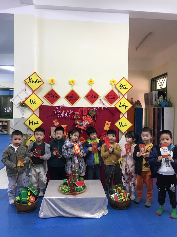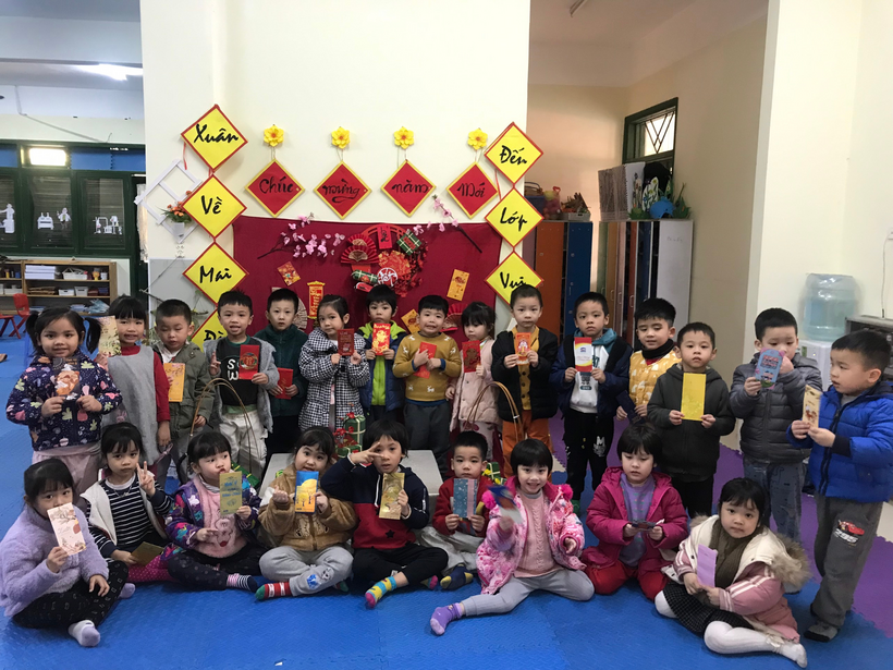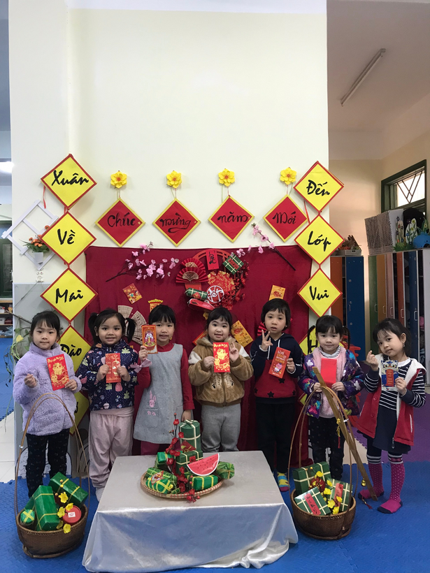 Hân hoan chào đón và nhận lì xì lộc đầu xuân Quý Mão của các bé Lớp B1. Chúc các bé thêm tuổi mới luôn mạnh khỏe, vui tươi, trưởng thành hơn, chăm ngoan và giỏi giang hơn năm trước.