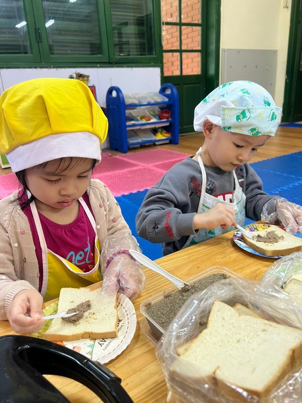 Các bạn nhỏ lớp B3 đã có một trải nghiệm làm bánh mì pate bơ rất thú vị. Bạn nhỏ nào cũng hào hứng tích cực tham gia hoạt động và vô cùng thích thú thưởng thức những chiếc bánh thơm ngon do chính tay mình làm ra đấy ạ!