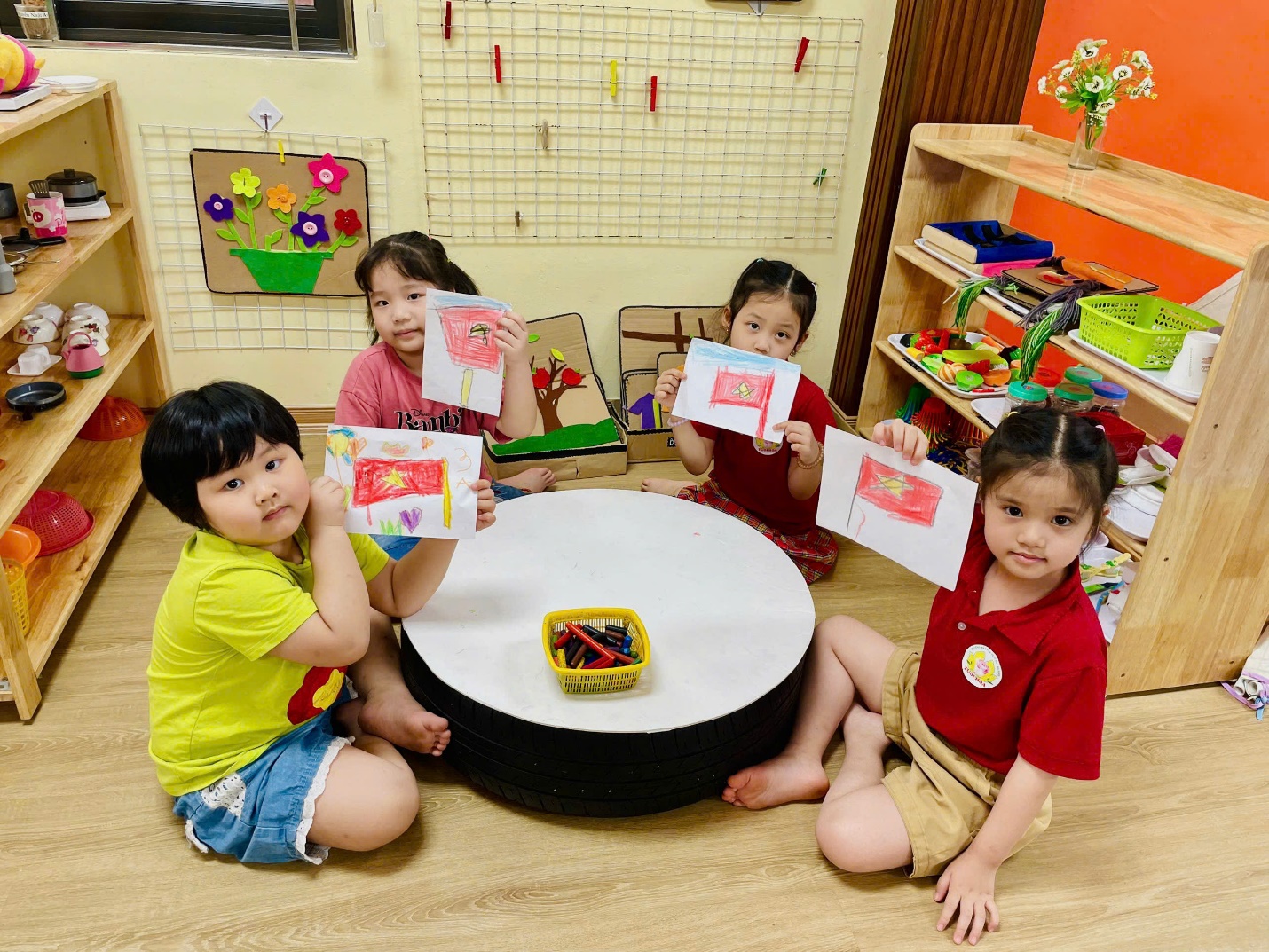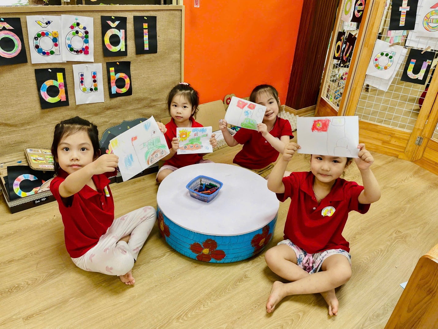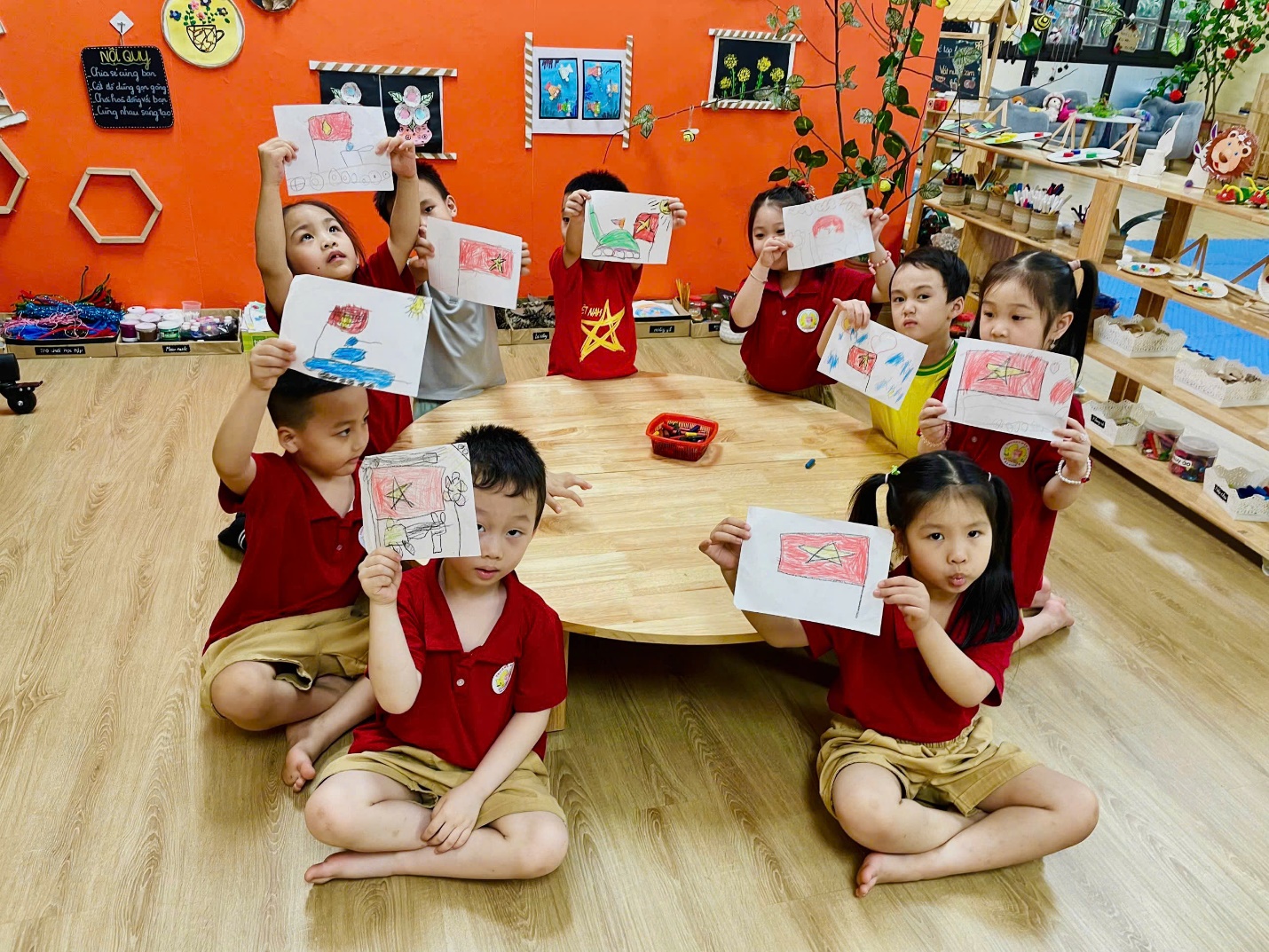 Các bé hoàn thành những bức tranh rực rỡ về lá cờ Việt Nam chủ đề chào mừng ngày 30/4