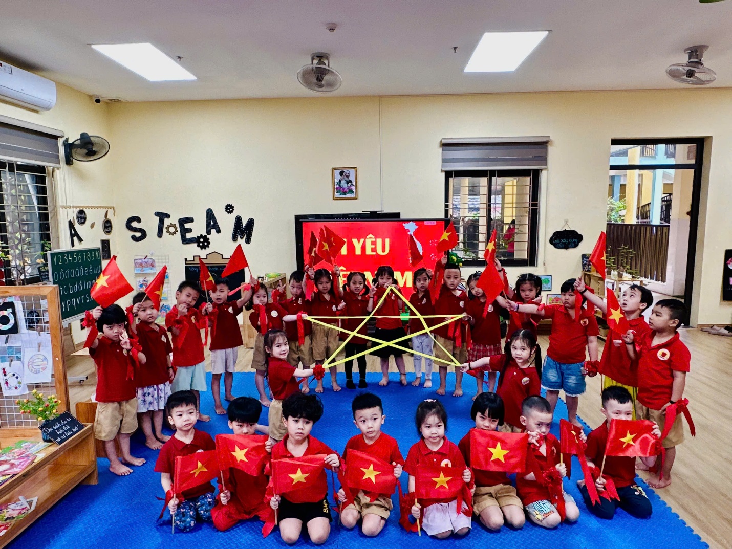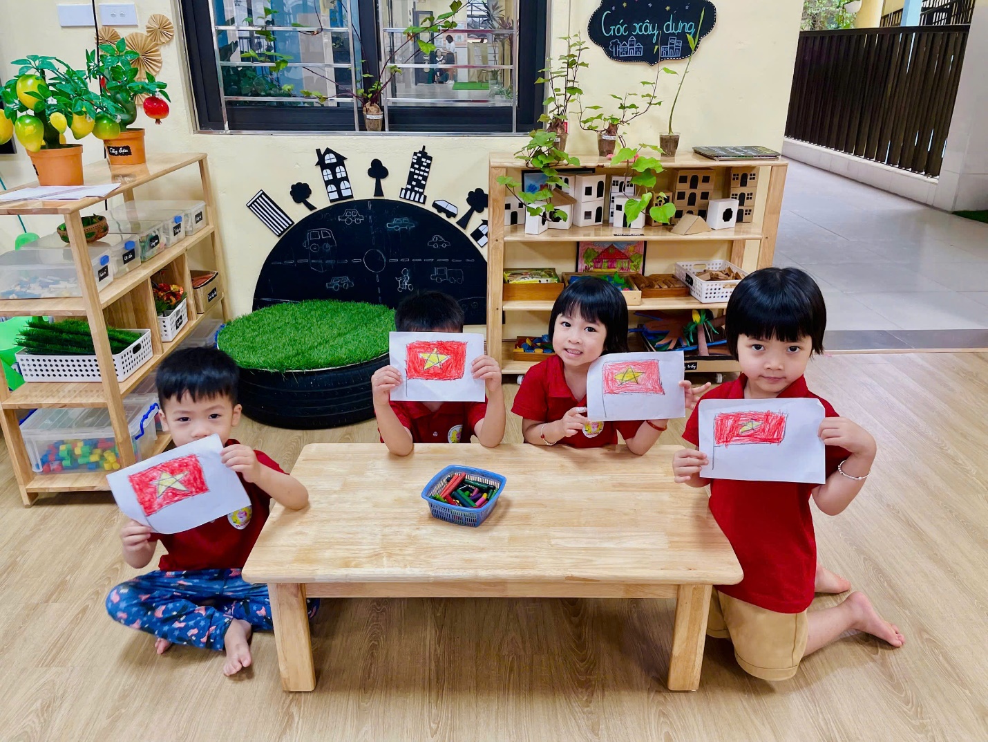 Các bé tạo hình ngôi sao, chụp ảnh kỉ niệm cùng lá cờ Việt Nam thể hiện tình yêu đất nước và dân tộc