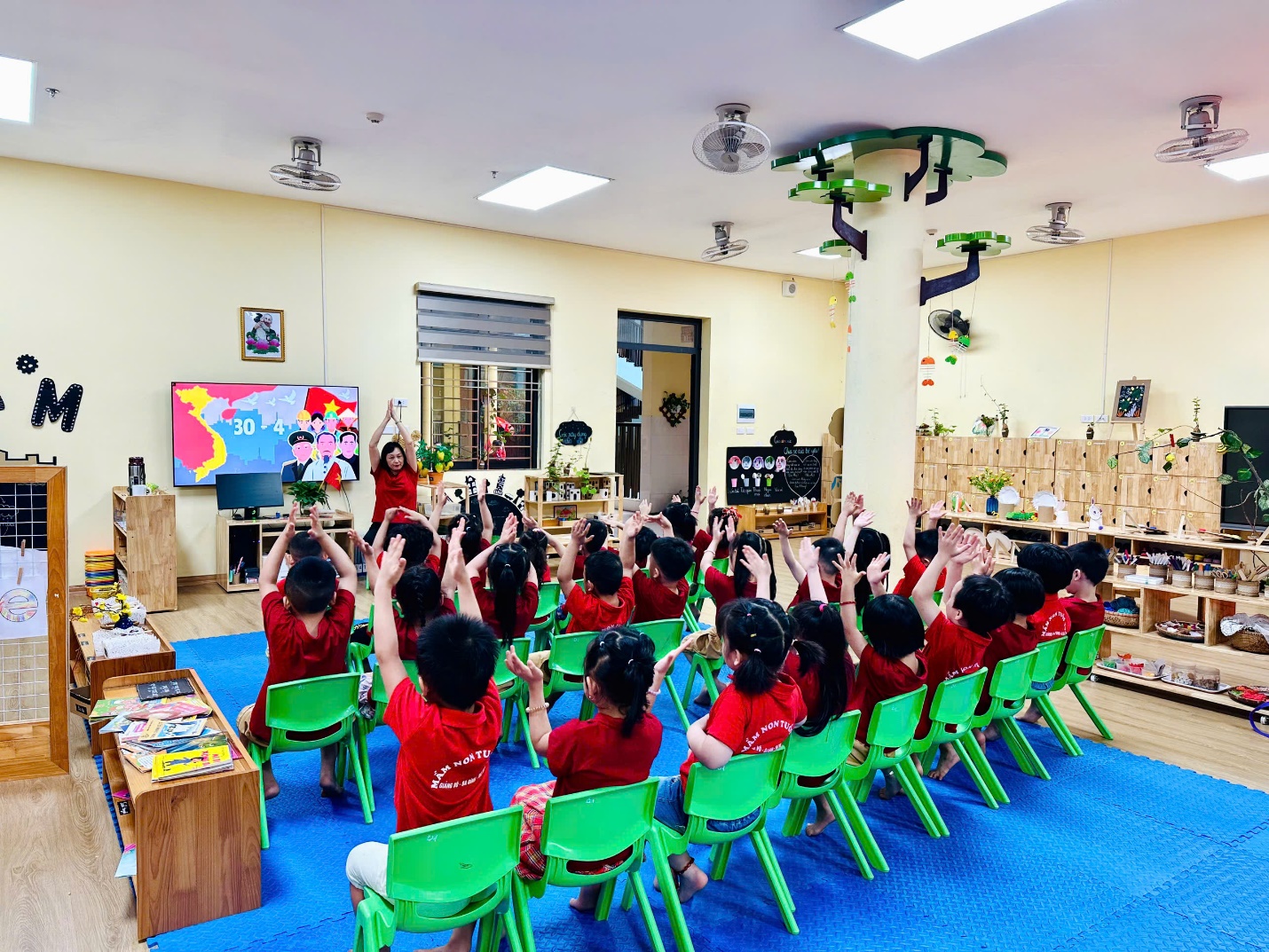 Để chào mừng 50 năm ngày Giải phóng Miền Nam thống nhất đất nước, các bé lớp B1 được tham gia vào rất nhiều hoạt động trải nghiệm, các con được nghe cô giáo kể chuyện lịch sử, hát những bài ca cách mạng và cùng nhau vẽ tranh về ngày lễ. Hoạt động giúp các bé thêm yêu quê hương, đất nước và hiểu hơn về truyền thống dân tộc. Bé nào cũng hào hứng tham gia và thể hiện sự tự hào qua từng nét vẽ, lời ca. Đây là dịp để giáo dục lòng yêu nước cho trẻ ngay từ lứa tuổi mầm non