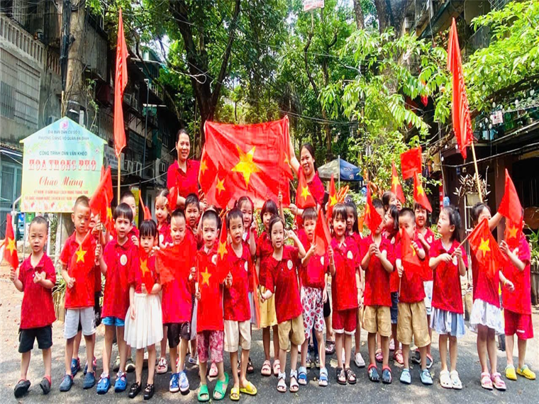 Chào mừng 50 năm ngày Giải phóng Miền Nam thống nhất đất nước, các bé lớp B4 được tham gia vào rất nhiều hoạt động trải nghiệm, các con được nghe cô giáo kể chuyện lịch sử, hát những bài ca cách mạng và cùng nhau vẽ tranh về ngày lễ. Hoạt động giúp các bé thêm yêu quê hương, đất nước và hiểu hơn về truyền thống dân tộc. Bé nào cũng hào hứng tham gia và thể hiện sự tự hào qua từng nét vẽ, lời ca. Đây là dịp để khơi dậy niềm tự hào và giáo dục lòng yêu nước cho trẻ ngay từ lứa tuổi mầm non