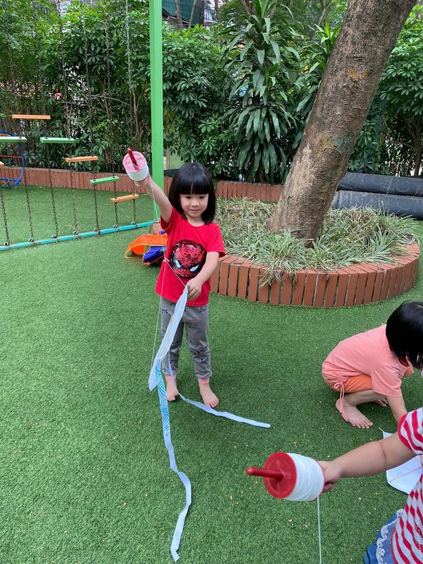 Để giúp cho các bạn nhỏ hiểu rõ hơn về trò chơi đơn giản mà hấp dẫn này, các cô giáo lớp A2 đã cùng với các con trải nghiệm, khám phá về con diều, cách làm diều và thả diều! Diều chưa bay cao được như mong đợi nhưng đây cũng sẽ là một kỷ niệm đẹp của các bé