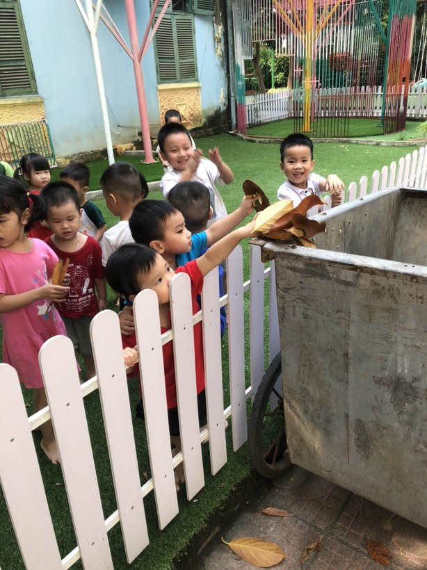 Dưới đây là một số hình ảnh các bé lớp mẫu giáo bé C1 tham gia hoạt động lao động nhặt lá cây khu vui chơi :