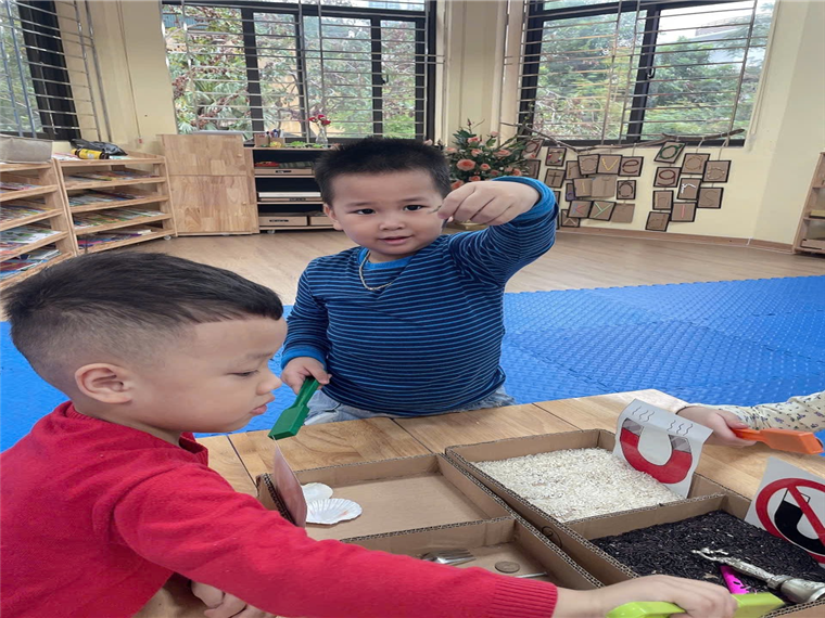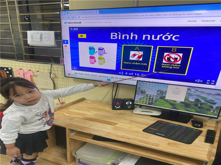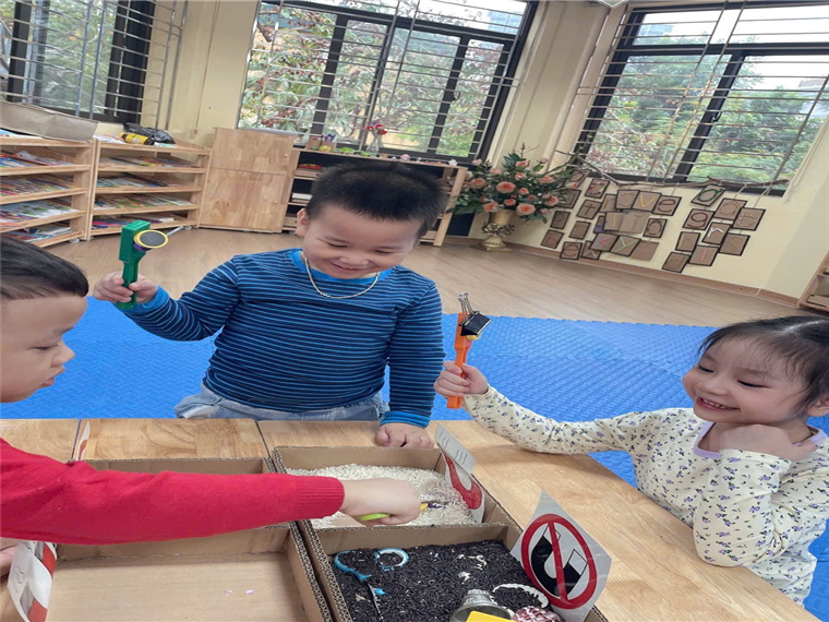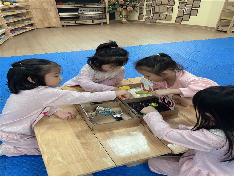 Hoạt động thử nghiệm “Nam châm hút gì?” của các bé lớp mẫu gióa nhỡ B4 trường mầm non Tuổi Hoa