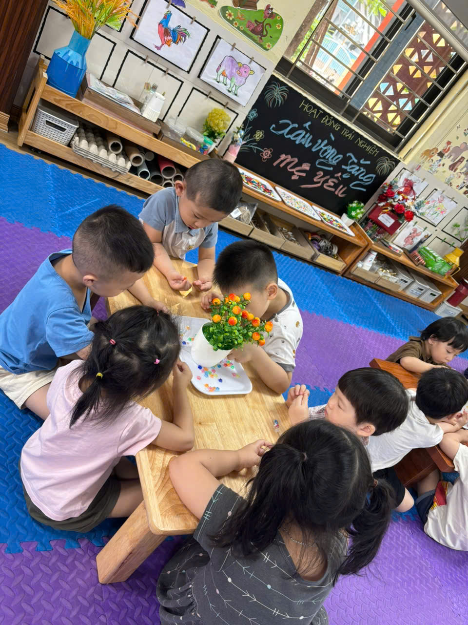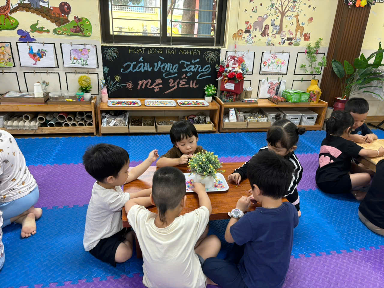 Sáng ngày 14 tháng 10 năm 2024, hai cô đã tổ chức cho các bạn nhỏ lớp C3 buổi trải nghiệm “Xâu vòng tặng mẹ ” nhân ngày 20/10. Bạn nào cũng hồ hởi, háo hức khi tự mình được làm ra món quà tặng bà, tặng mẹ. Các bạn ai cũng chăm chú lắng nghe và quan sát cô hướng dẫn cách làm để tự mình làm ra được những chiếc vòng thật đẹp.
