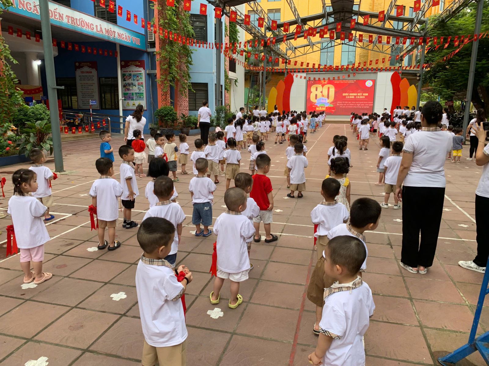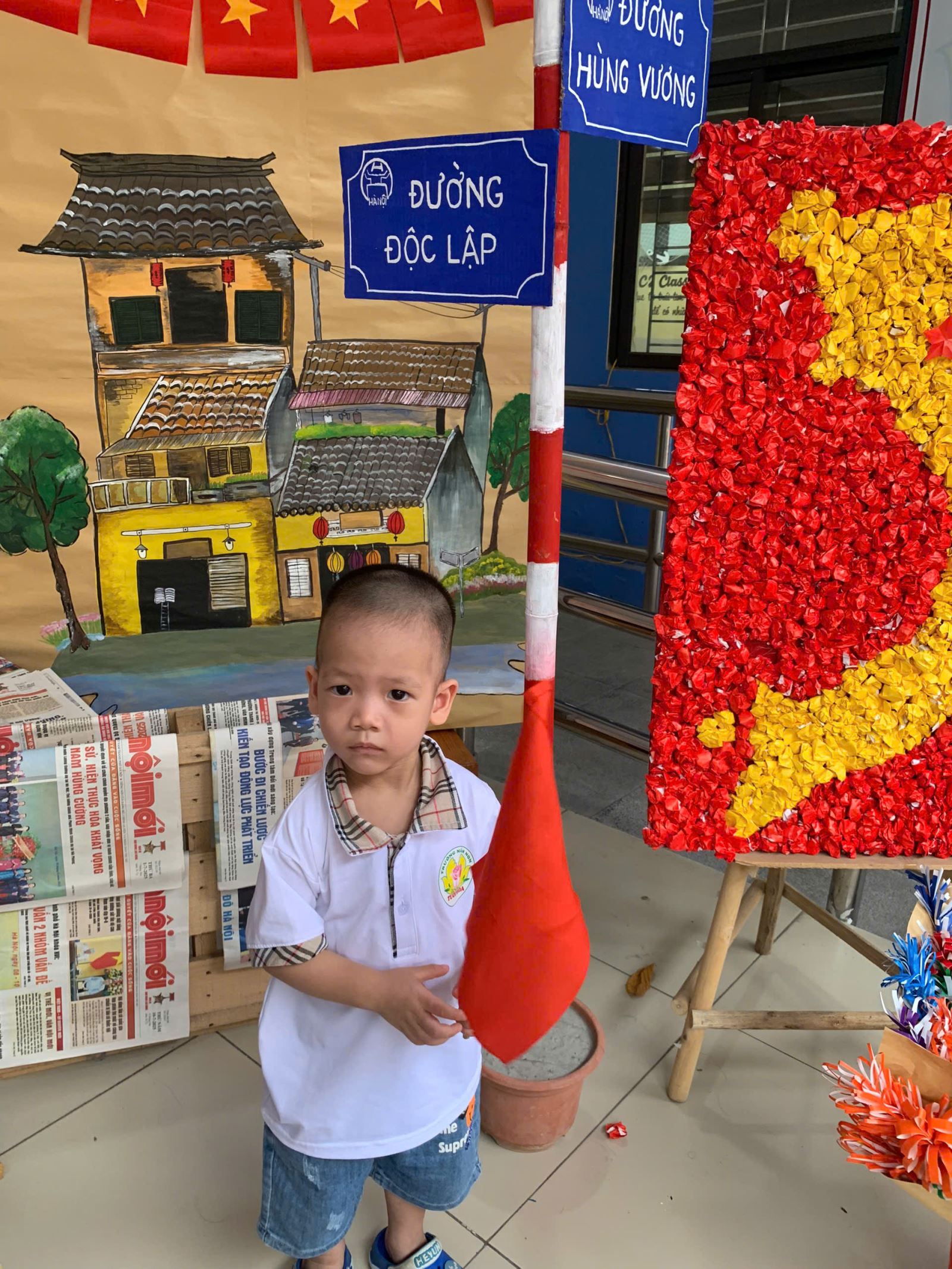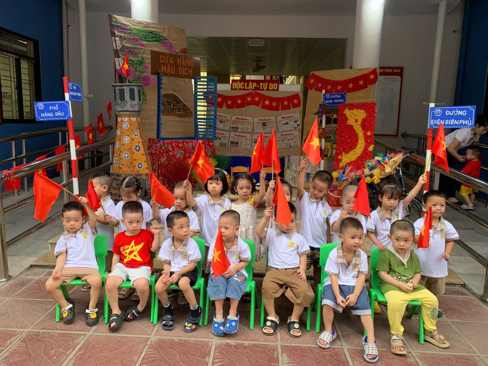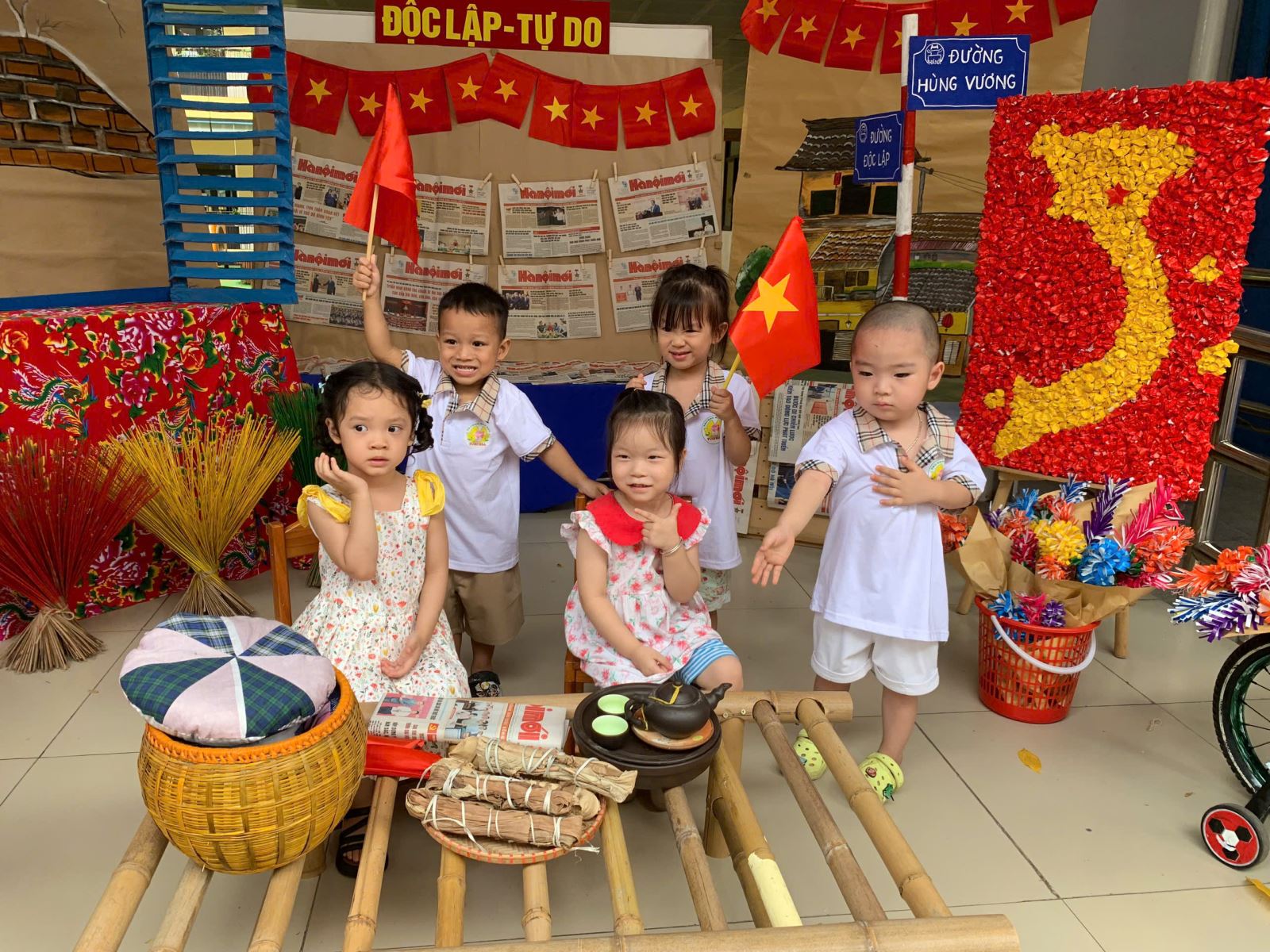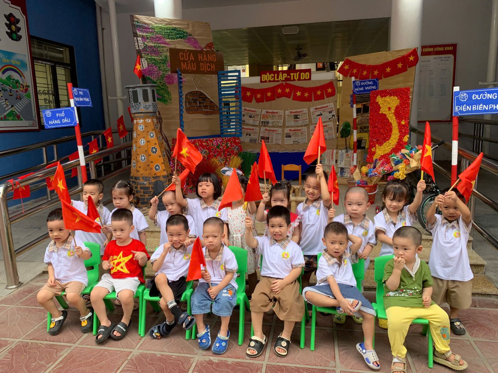 Dưới đây là một số hình cảnh của các bé lớp C2: Các bé chụp ảnh với cờ đỏ sao vàng ! Hình ảnh các bé hân hoan chào đón tết độc lập . Hình ảnh kỉ niệm bên bản đồ Việt Nam . Các con tập hát Quốc ca và diễu binh cùng tập thể trường .