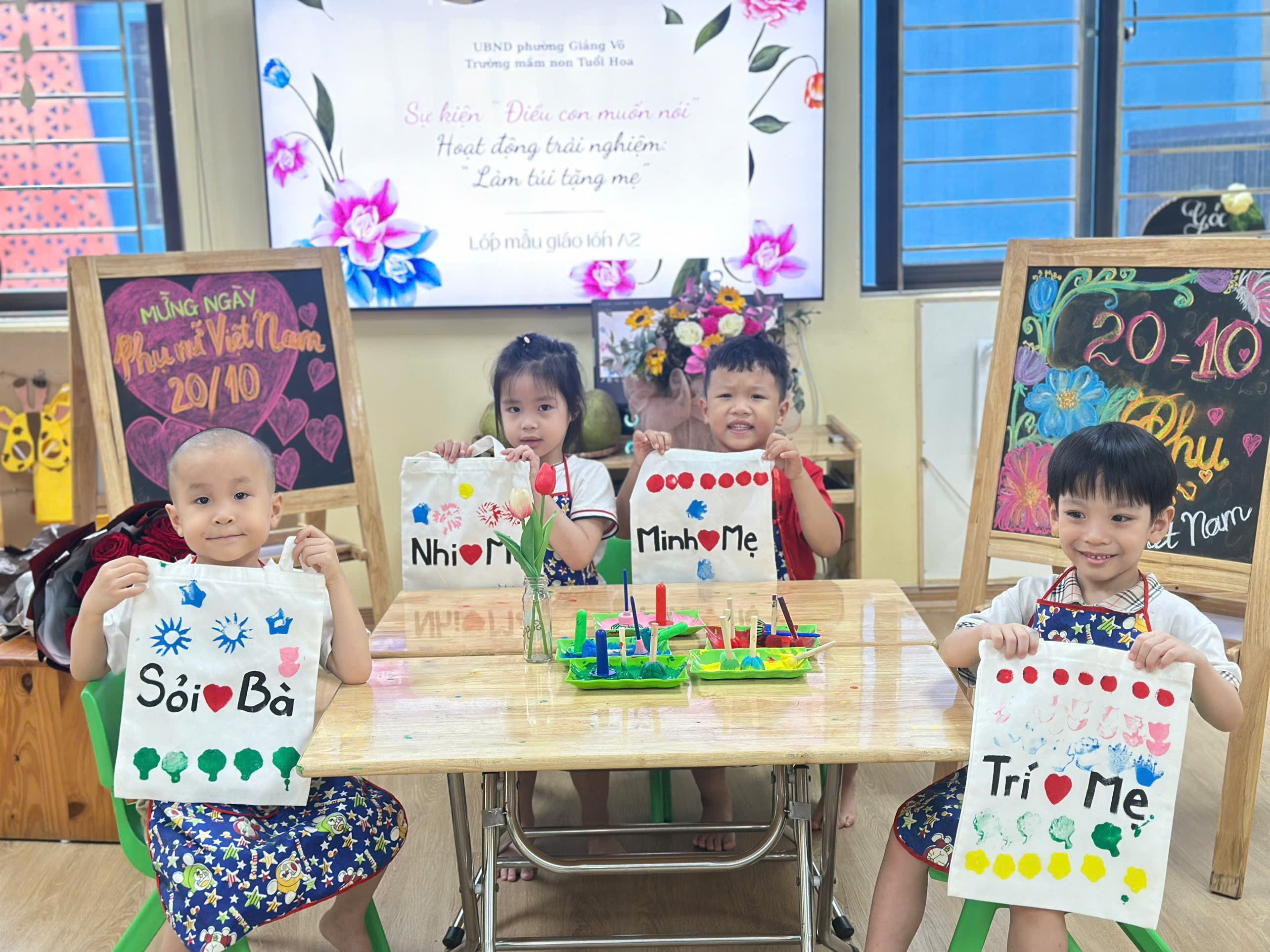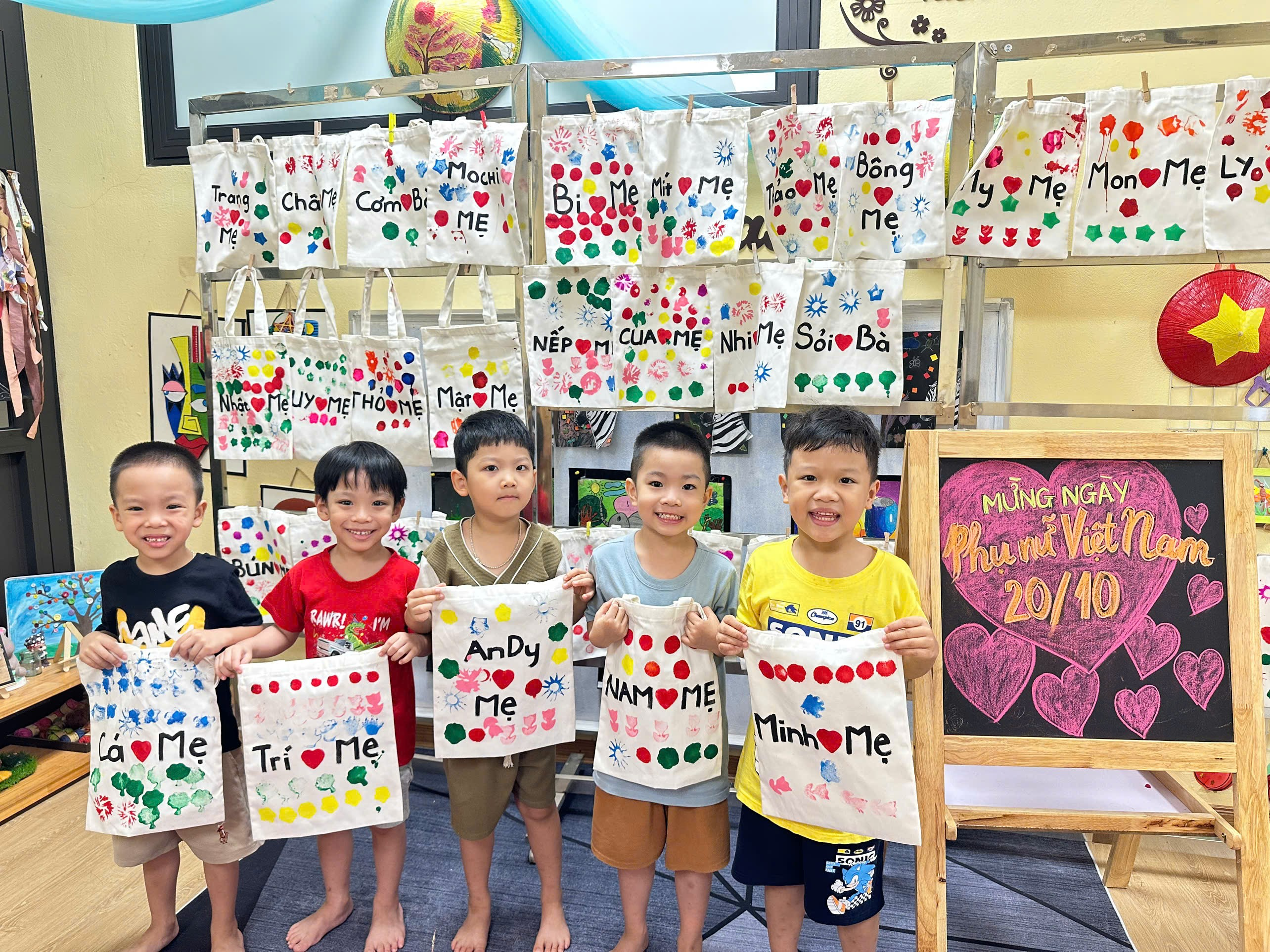 Sau những giờ học sáng tạo và đầy hứng khởi, các bạn nhỏ lớp MGL A2 đã hoàn thành những chiếc túi xinh xắn do chính tay mình trang trí để gửi tặng mẹ yêu