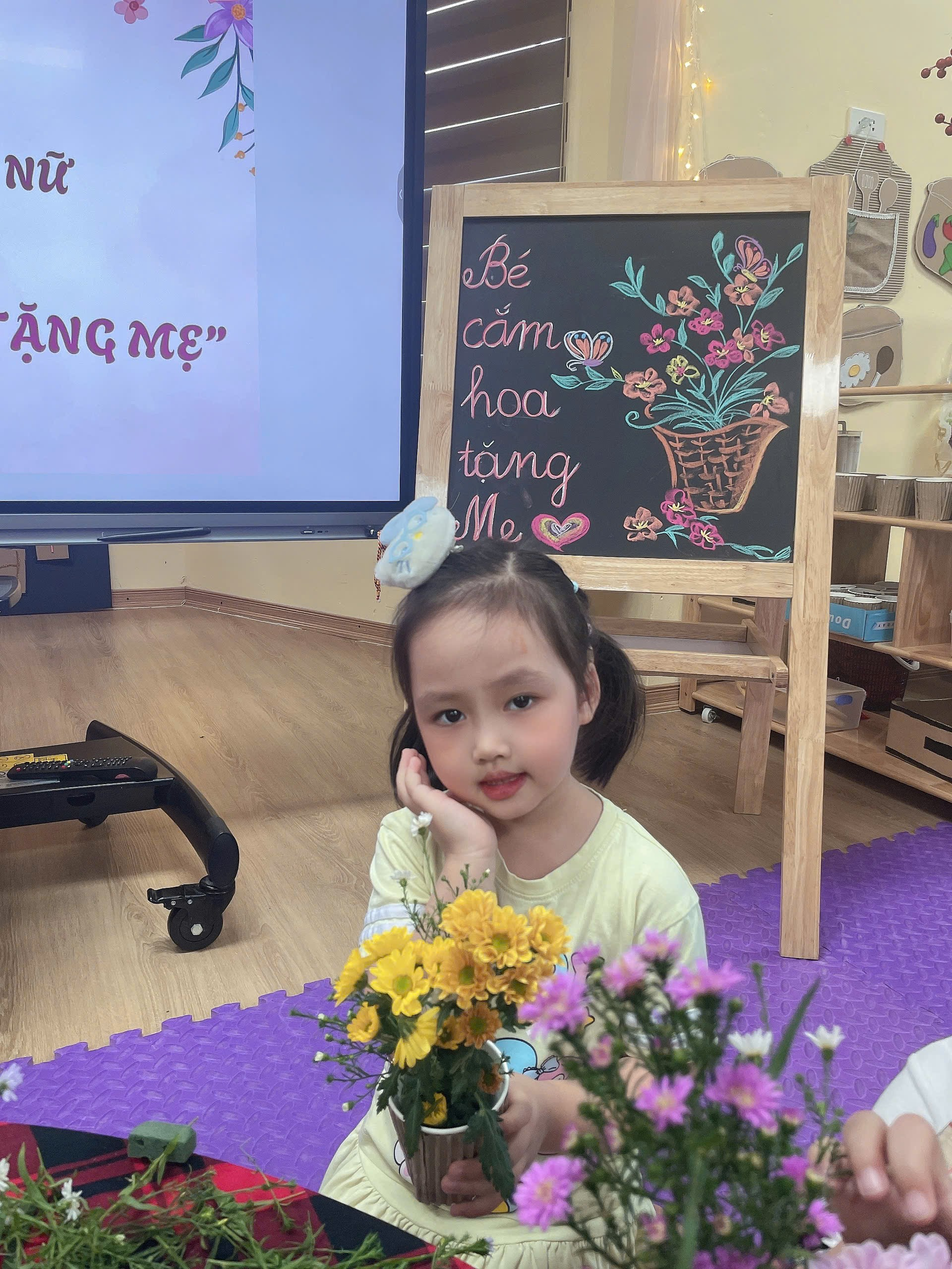 Món quà của các con nhỏ thôi, đơn giản nhưng rất đẹp và tươi sáng. Đó là tình yêu, là sự hồn nhiên và ngây thơ chân thành của con muốn thể hiện tình yêu thương với bà và mẹ yêu quý. Chính vì vậy lớp mẫu giáo nhỡ B3 đã tổ chức cho trẻ tham gia hoạt động trải nghiệm: “cắm hoa tặng Bà, tặng Mẹ” để trẻ được tự tay làm nên món quà đơn giản nhưng đầy ý nghĩa để tặng bà, tặng mẹ nhân ngày phụ nữ Việt Nam 20/10 . Để giúp trẻ có những bó hoa thật xinh đẹp và đơn giản, cô giáo đã chuẩn bị nhiều nguyên liệu như: giỏ hoa, hoa các loại, xốp, rổ đựng...
