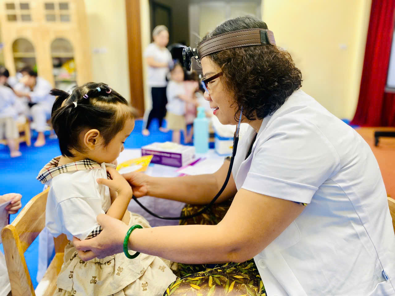 Hình ảnh các bé được bác sĩ khám tim phổi