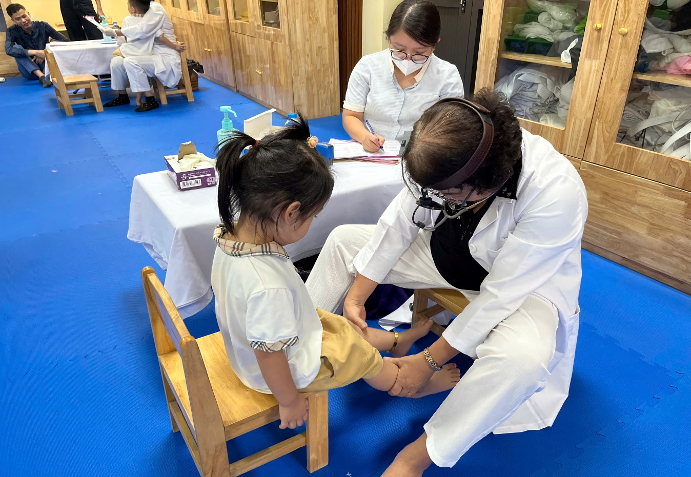 Hình ảnh các bé được bác sĩ khám bàn chân bẹt