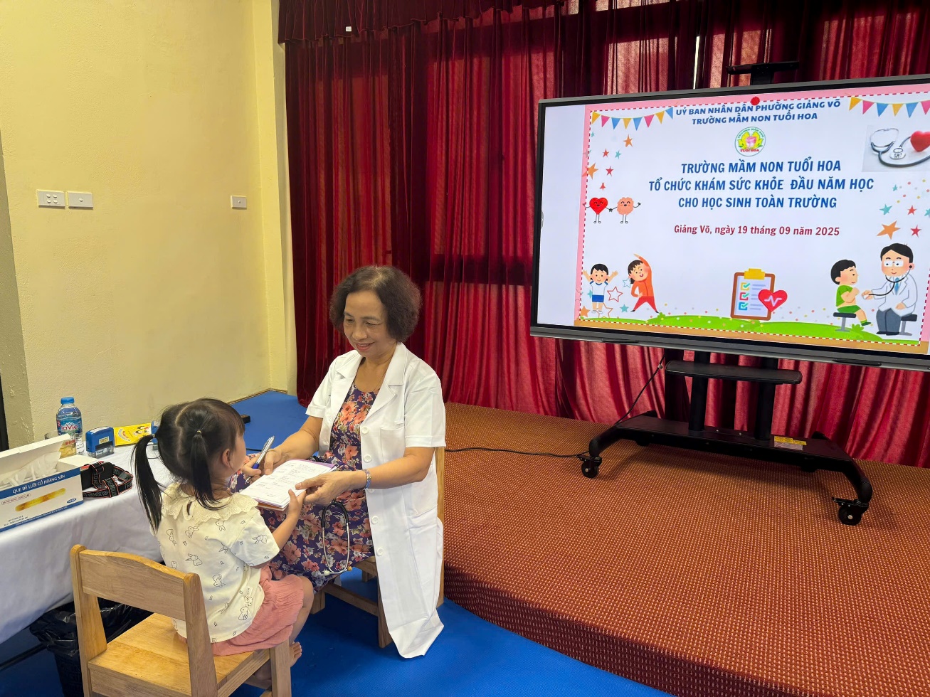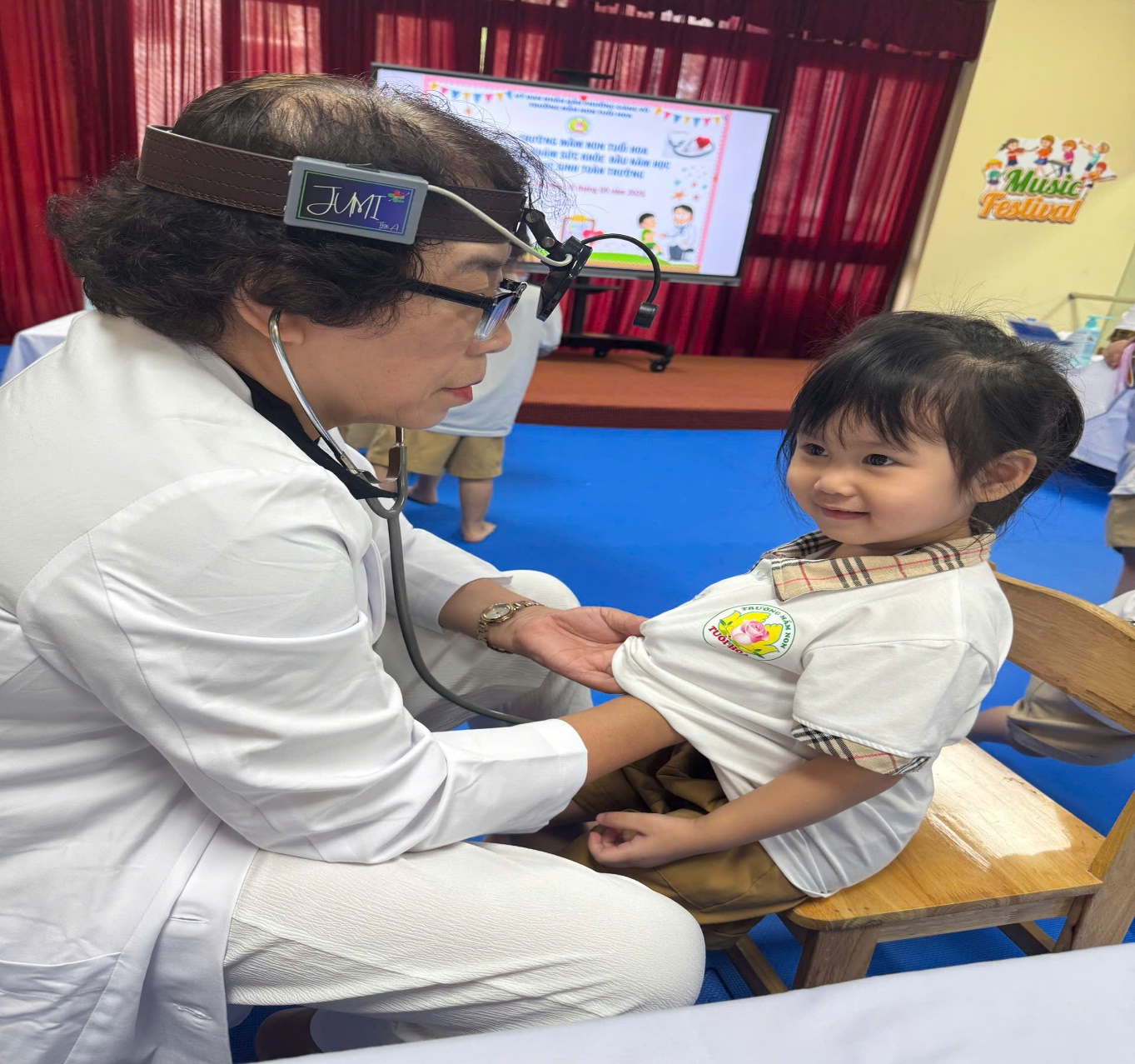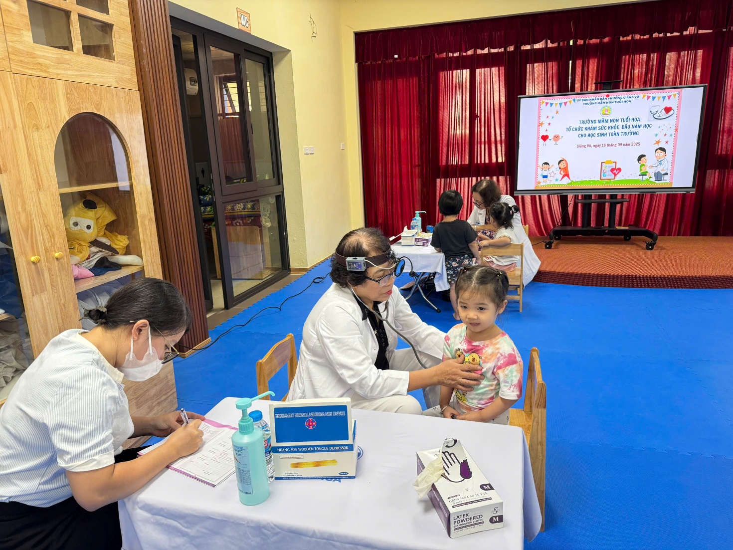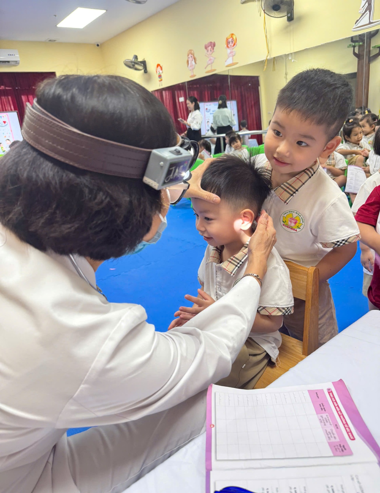 Ngày 19/9/2025, các bé lớp Mẫu giáo Bé C1 đã tham gia buổi khám sức khỏe định kỳ tại trường. Các bác sĩ đã kiểm tra chiều cao, cân nặng, răng miệng và tai mũi họng cho từng bé. Các con rất ngoan ngoãn, hợp tác và tỏ ra thích thú khi được bác sĩ thăm khám. Buổi khám giúp các cô và phụ huynh nắm rõ tình hình sức khỏe để chăm sóc các bé tốt hơn. Hoạt động này cũng giúp các con lớp C1 hình thành thói quen giữ gìn sức khỏe ngay từ nhỏ.