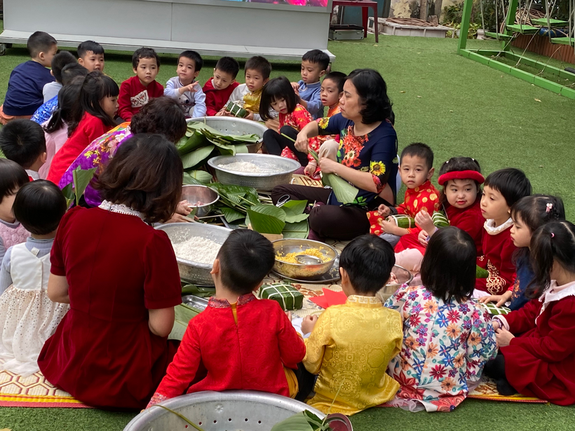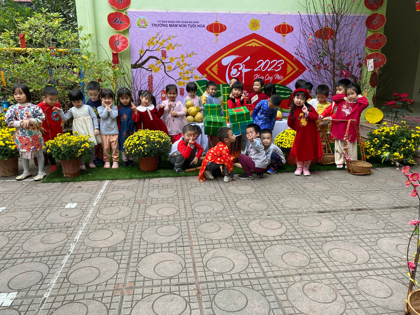 Xuân ơi! Xuân ơi ! Xuân đã về, lớp B1 đã tham gia ngày hội " Bé vui đón xuân" do trường MN Tuổi Hoa tổ. Các bé đã có rât nhiều trải nghiệp thú vị thông qua các hoạt động như: Gói bánh chưng, làm bưu thiếp... với chủ đề Tết, trẻ được tham gia chơi các trò chơi truyền thống như: Nhảy sạp, bắt vịt....   Không khí Tết dường như đến sớm hơn với sự háo hức, phấn khởi, say mê của các bé khi tham gia vào các hoạt động ngày Tết cùng cô và các bạn.