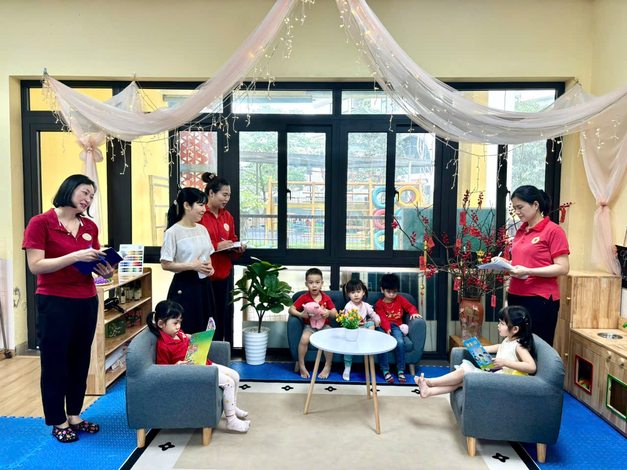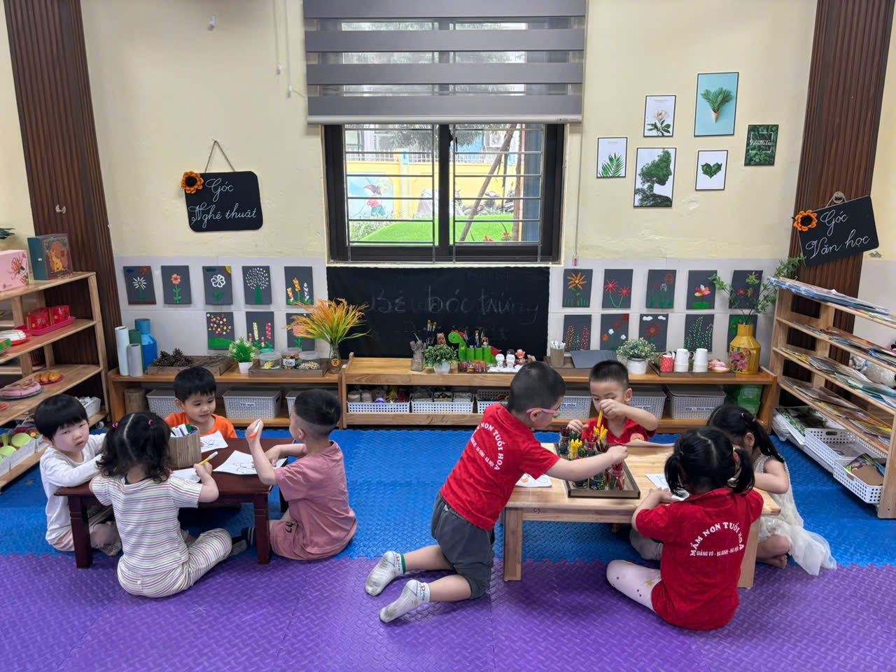 hai cô giáo đã tích cực xây dựng nhiều không gian xanh trong lớp, sắp xếp môi trường, bố trí các góc chơi khoa học, hợp lý, sáng tạo, đảm bảo tính thẩm mỹ; thiết kế các bài tập giúp trẻ phát triển; lựa chọn, sưu tầm và sử dụng các nguyên vật liệu tái chế từ thiên nhiên để xây dựng môi trường giáo dục phát huy tính tích cực của trẻ vừa tạo được sự thân thiện với môi trường, vừa tạo không gian mở, xanh, sạch đẹp, an toàn
