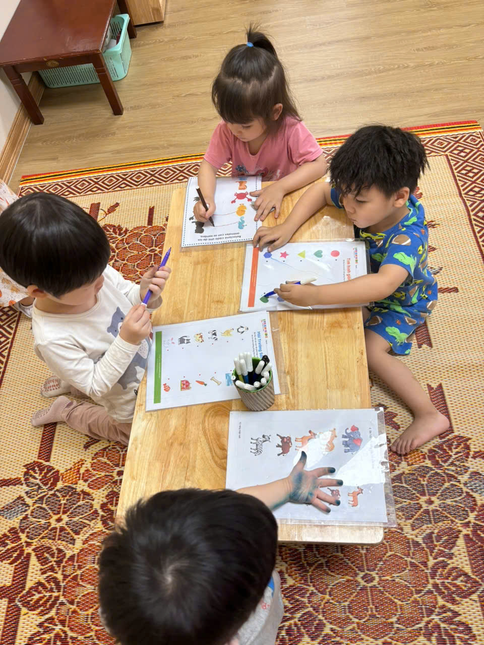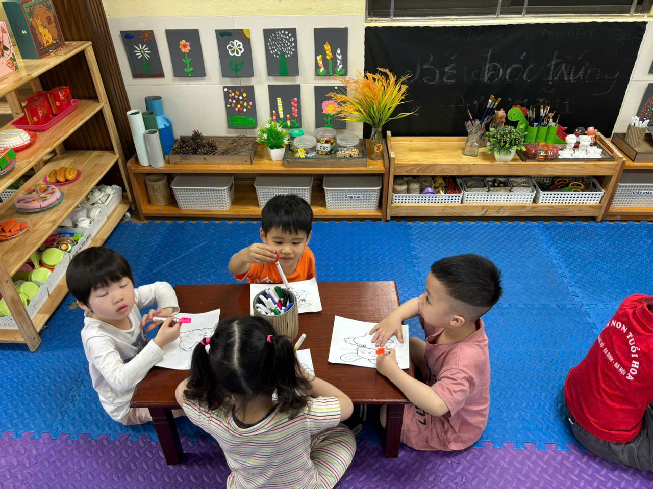 Giáo viên tích cực xây dựng môi trường lớp học thân thiện , gần gũi với trẻ .