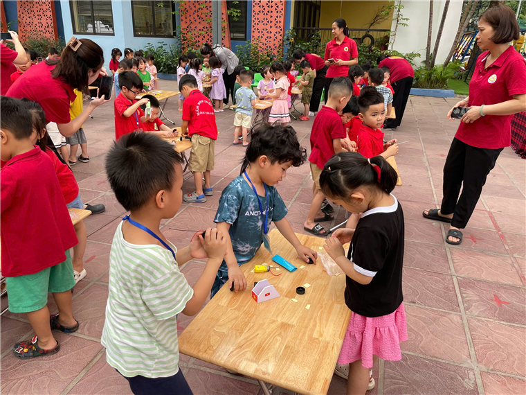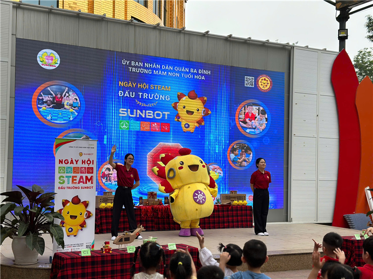Sáng ngày 22/04, ngày hội STEAM – đấu trường SUNBOT của các bé lớp MGN B1 đã diễn ra trong không khí vui tươi, hào hứng và đầy sáng tạo. Khi tham gia ngày hội, các bé được khám phá nhiều hoạt động thú vị liên quan đến khoa học, công nghệ, kỹ thuật, nghệ thuật và toán học. Với sự hướng dẫn tận tình của các cô giáo, các bé đã tự tay làm ra những sản phẩm đáng yêu, mang đậm dấu ấn cá nhân. Những trải nghiệm này không chỉ giúp trẻ phát triển tư duy logic mà còn rèn luyện kỹ năng làm việc nhóm và sự tự tin. Ngày hội thực sự là một sân chơi bổ ích, mở ra thế giới khám phá đầy màu sắc cho các bé yêu.