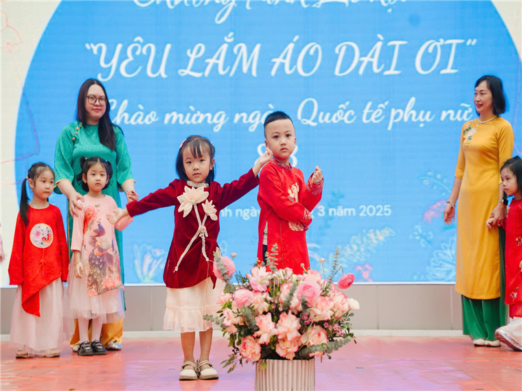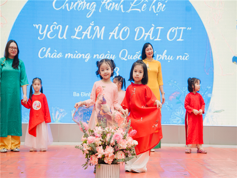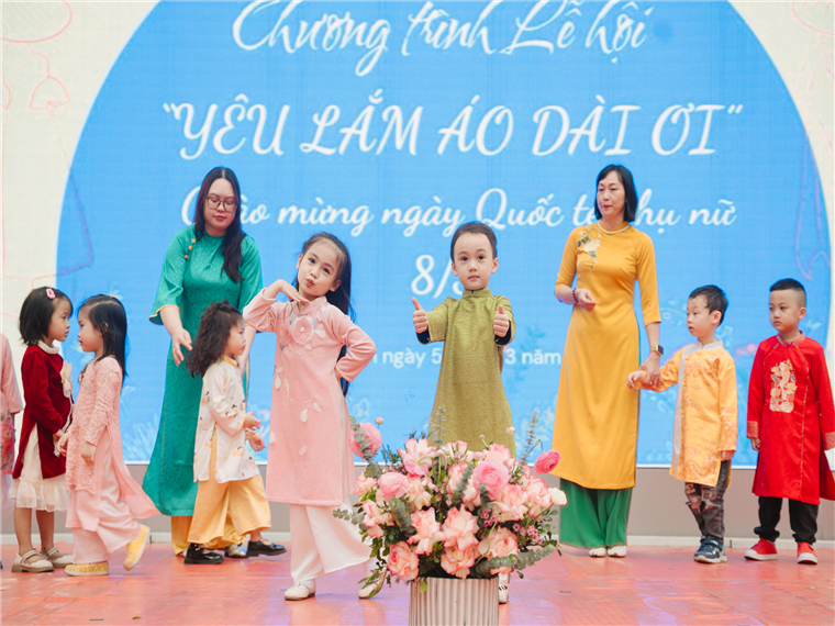 Các con trình diễn áo dài chương trình lễ hội “Yêu lắm áo dài ơi”