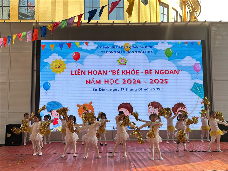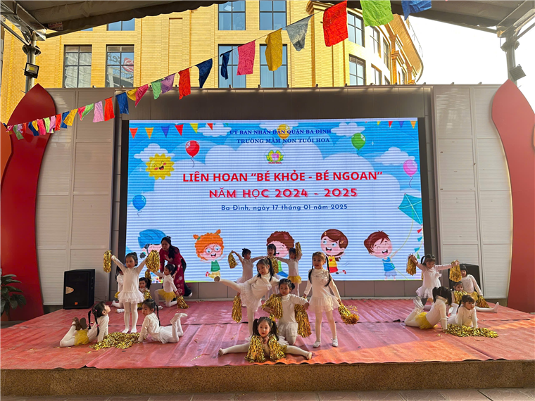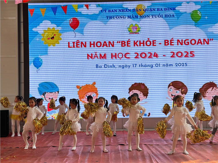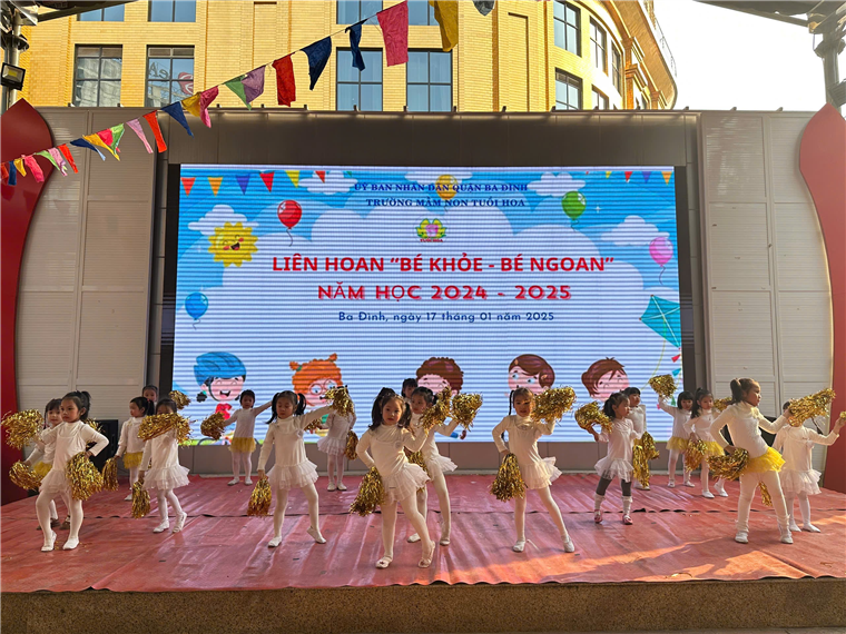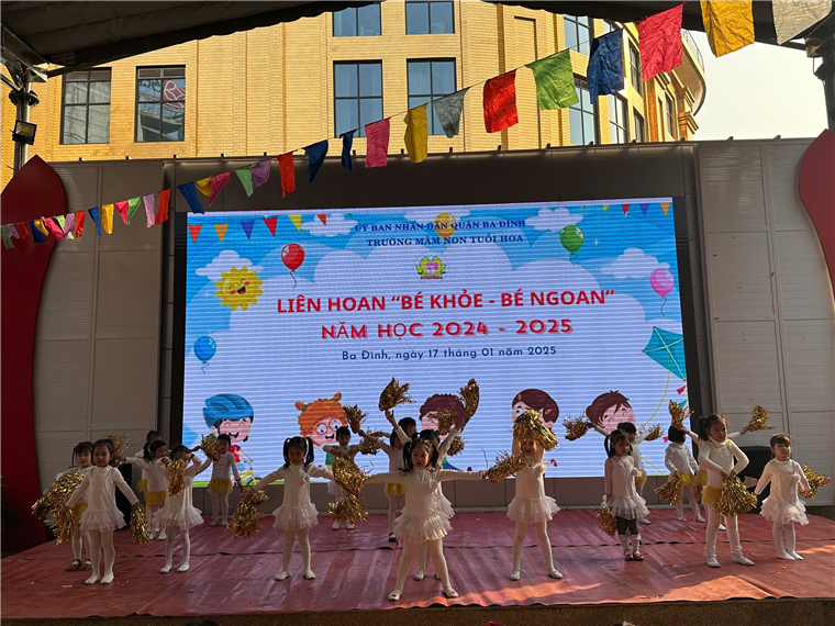 Chiều ngày 17 tháng 01 năm 2025 Trường Mầm non Tuổi Hoa đã tổ chức hoạt động "Liên hoan Bé khỏe, Bé ngoan" cấp trường năm học 2024 - 2025 dành cho các bé mẫu giáo " Các bạn nhỏ lớp mẫu giáo nhỡ B1 hòa chung không khí vui tươi hoạt động của nhà trường với màn đồng diễn thể dục vô cùng đặc sắc "Những trái tim Vệt Nam” và màn dự thi của khối mẫu giáo nhỡ với vũ điệu Erobic sôi động “Cascada- Every time we touch”