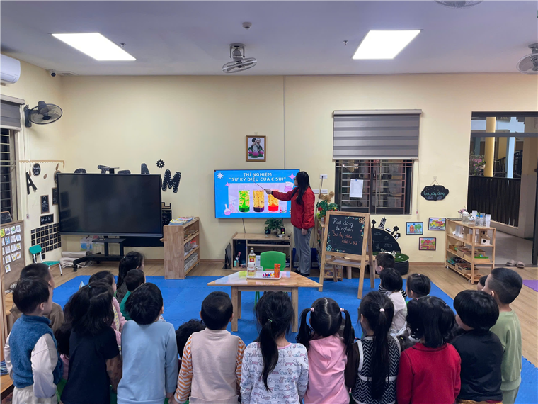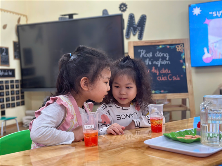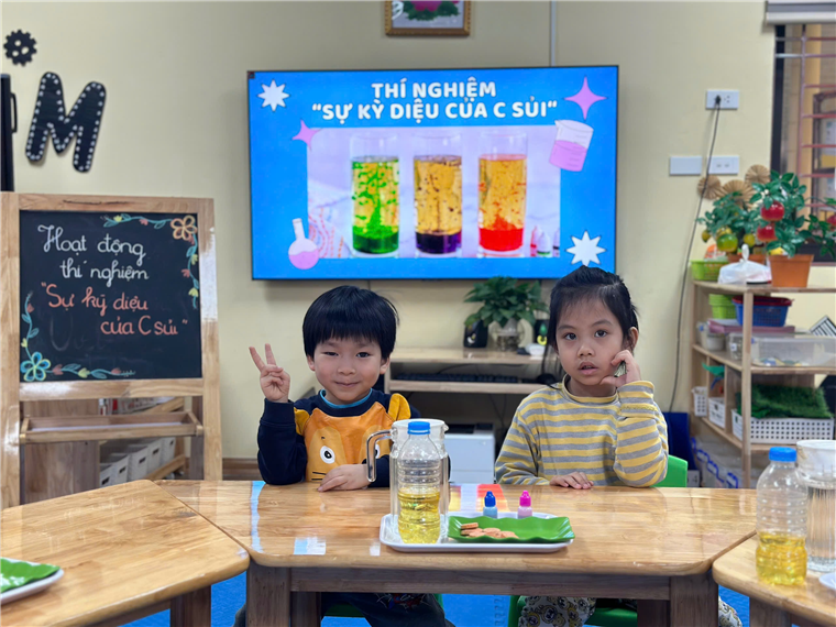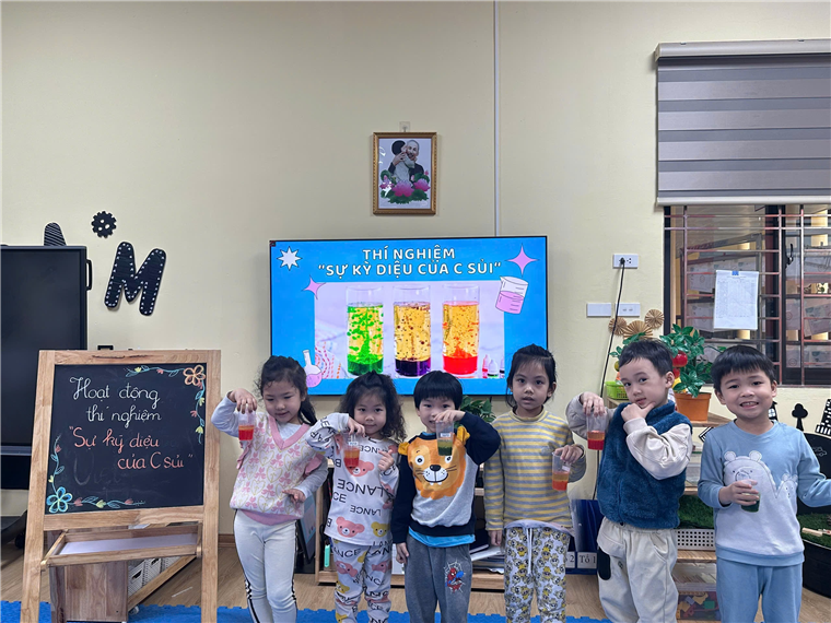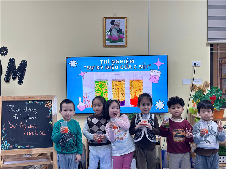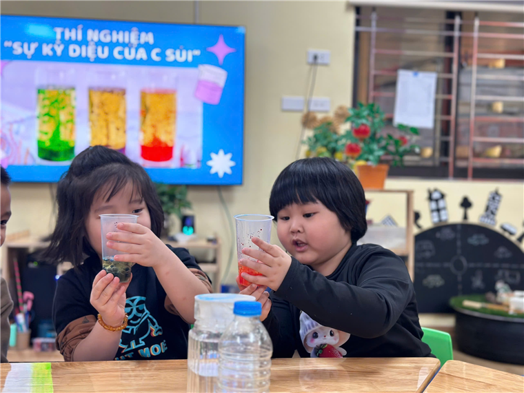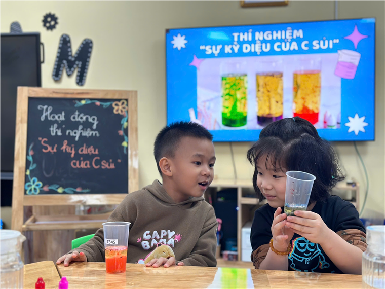 Thí nghiệm “Sự kỳ diệu của C sủi” là một trong những thí nghiệm quan trọng giúp phát triển tư duy và năng lực của trẻ. Các bé không chỉ học hỏi những kiến thức qua hình ảnh, lời kể mà còn trực tiếp trải nghiệm, khám phá qua những thí nghiệm vui.