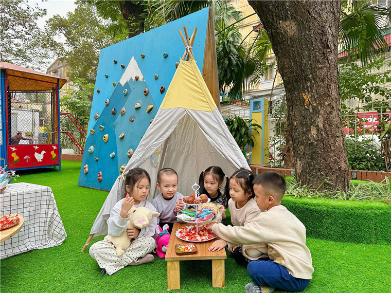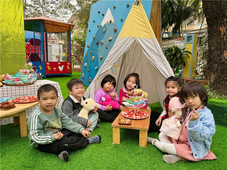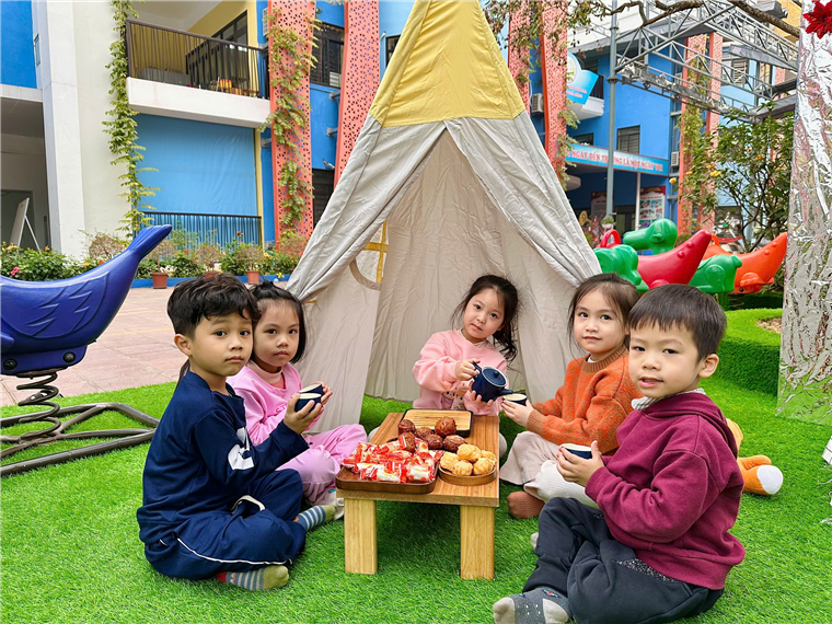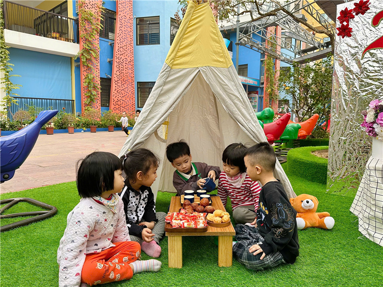 Để các con được phát triển kỹ năng xã hội và kích thích trí tưởng tượng, cô trò đã cùng nhau chuẩn bị, bày biện mọi thứ thật chu đáo, tỉ mỉ để tổ chức tiệc trà. Đây là cơ hội đặc biệt để các bạn được trải nghiệm về hình thức, quy trình tổ chức tiệc trà và những điều thú vị xung quanh trẻ.