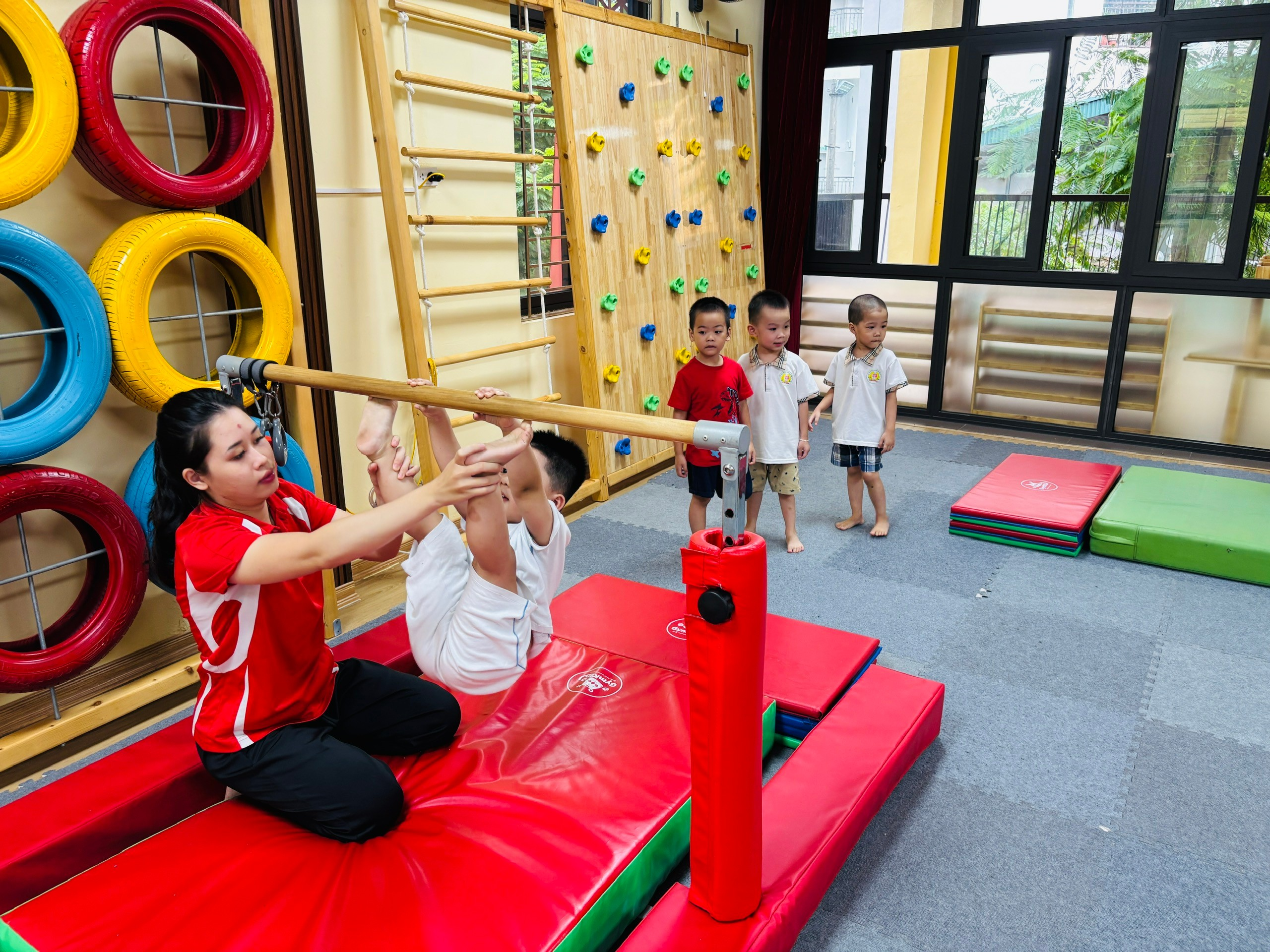 🌍 Đặc biệt, xuyên suốt buổi học được các Thầy cô thuộc trung tâm Gimks giảng dạy bằng tiếng Anh, giúp trẻ tiếp cận tiếng Anh - ngôn ngữ mới một cách tự nhiên thông qua trò chơi, bài hát và tương tác vận động. Vừa học, vừa chơi, vừa phát triển cả thể chất lẫn ngôn ngữ – đó chính là giá trị mà Gymkids mang lại.
