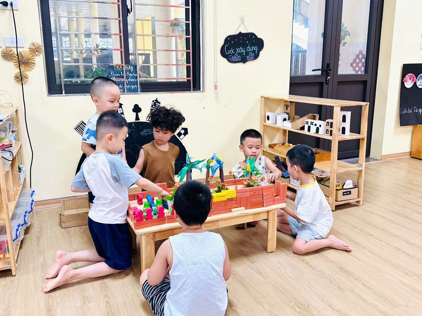 Đến trường trong những ngày hè thật là vui và thú vị, cô giáo tổ chức rất nghiều các hoạt động cho trẻ tham gia. Hoạt động góc là một trong những hoạt động hàng ngày của trẻ tại trường mầm non. Đây là một hoạt động giúp trẻ phát triển toàn diện về mọi mặt:Ngôn ngữ, nhận thức, thẩm mỹ, thể chất, phát triển tình cảm và kỹ năng xã hội. Hoạt động góc không chỉ nhằm tạo ra sản phẩm mà còn thỏa mãn nhu cầu chơi của trẻ.