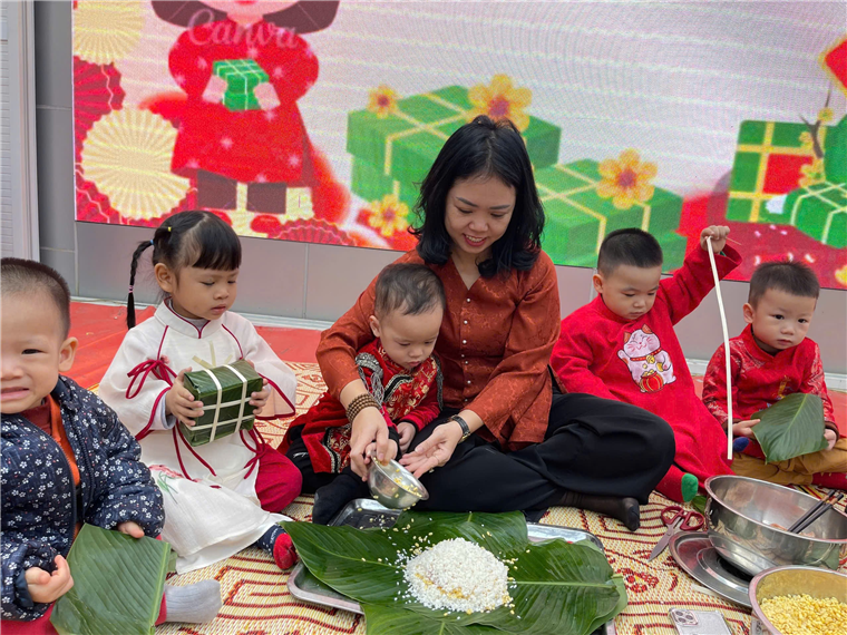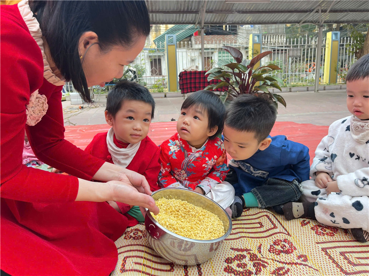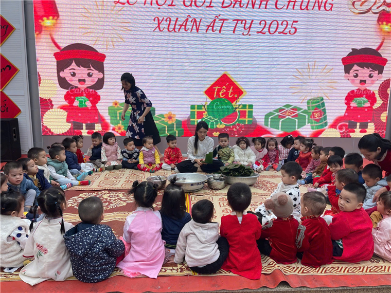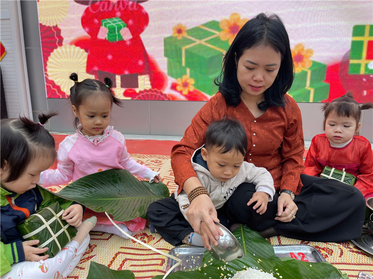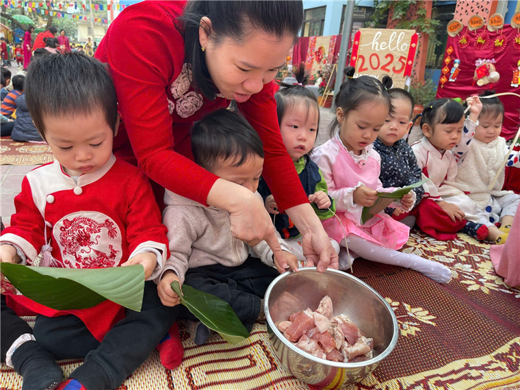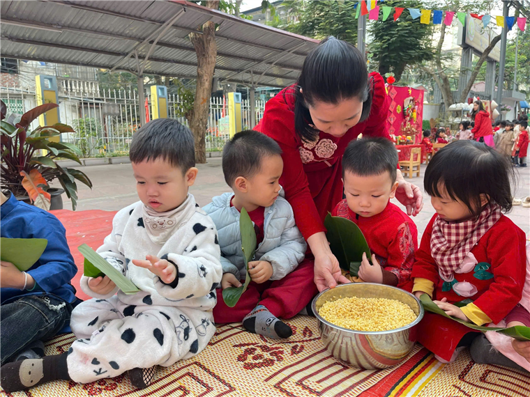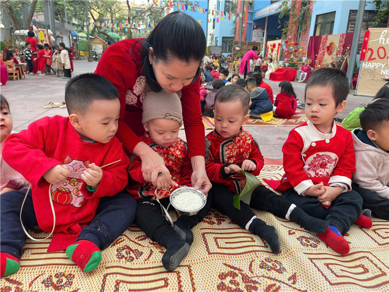 Các bé thực hành kỹ năng làm việc nhóm, hoạt động này còn giúp các bé phát triển sự khéo léo và khả năng quan sát. Các cô giáo và các bác cấp dưỡng đã cùng các bé tạo ra không khí vui tươi, hào hứng và giúp các bé hiểu thêm về một phần quan trọng trong ngày Tết. Sự tham gia nhiệt tình và thích thú của các bé đã làm cho ngày hội thêm phần ý nghĩa và vui vẻ.