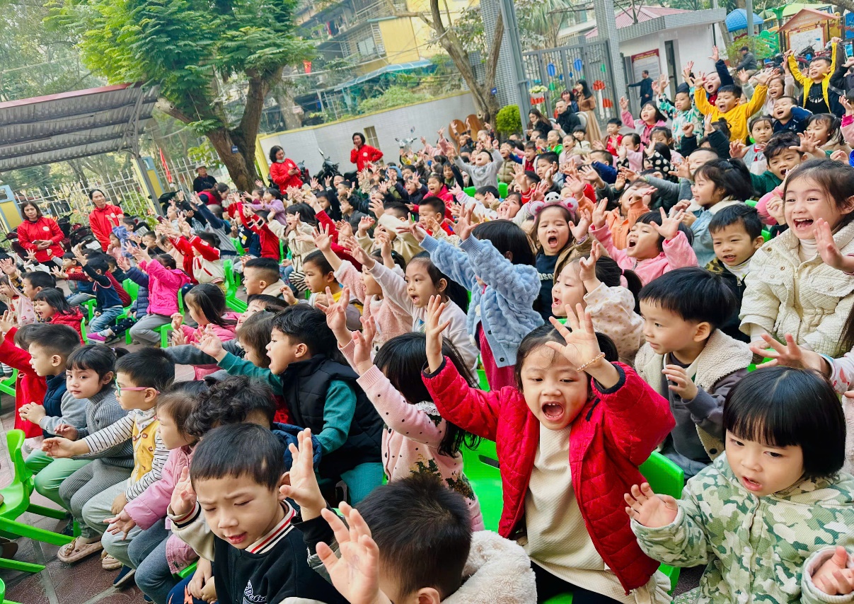 Các bé hào hứng, vui vẻ khi xem các tiết mục