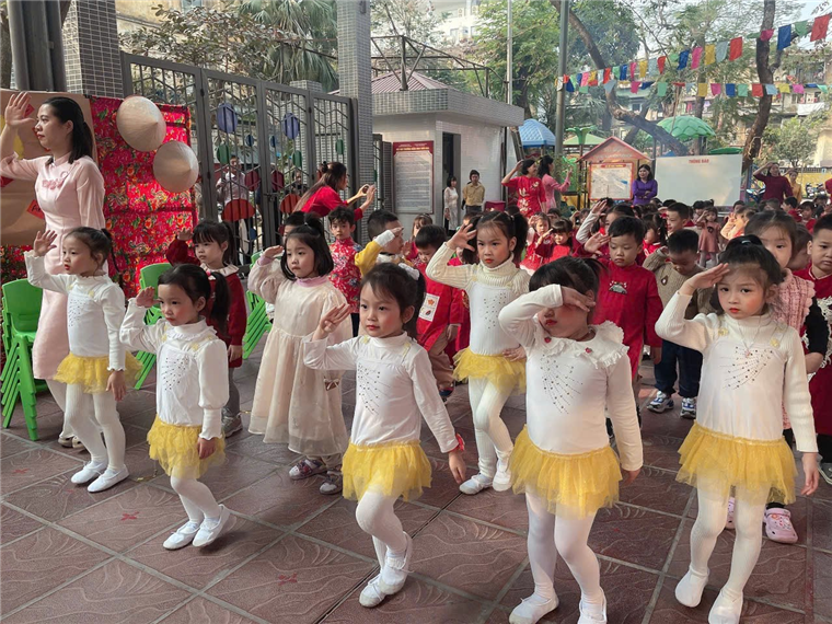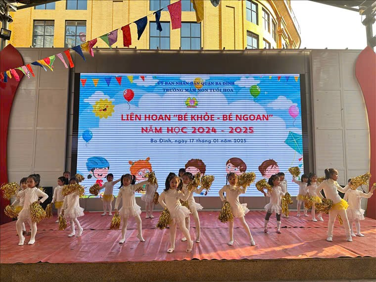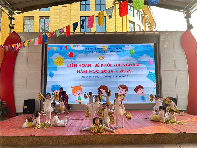 Các bé lớp MGN B4 tham dự liên hoan “Bé khỏe - Bé ngoan” tại trường Mầm non Tuổi Hoa.