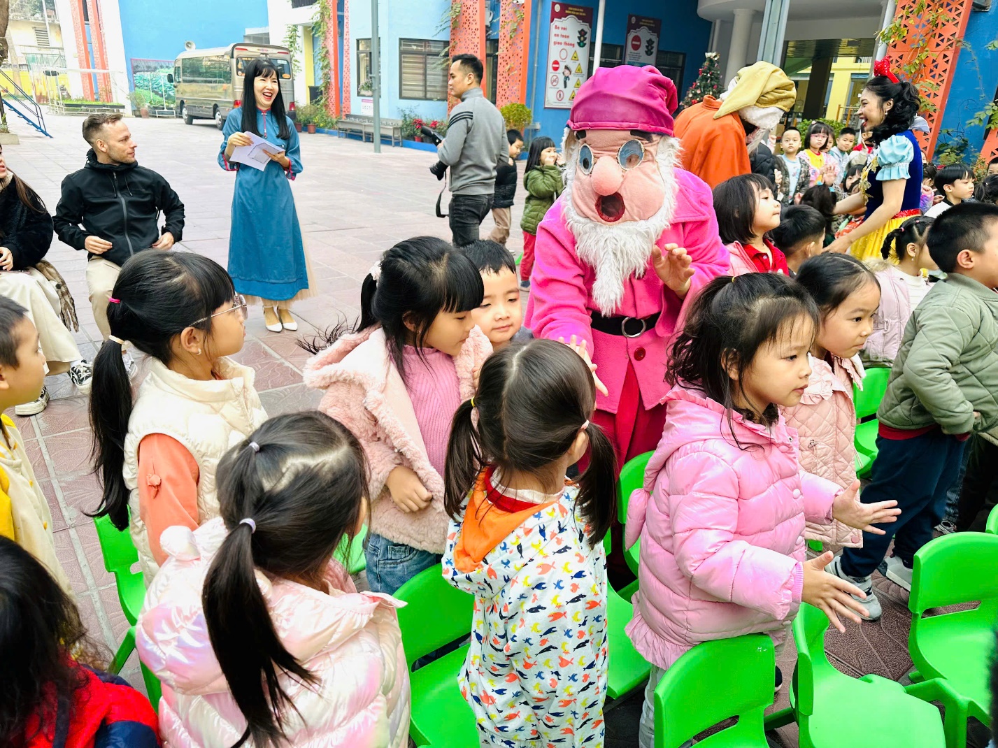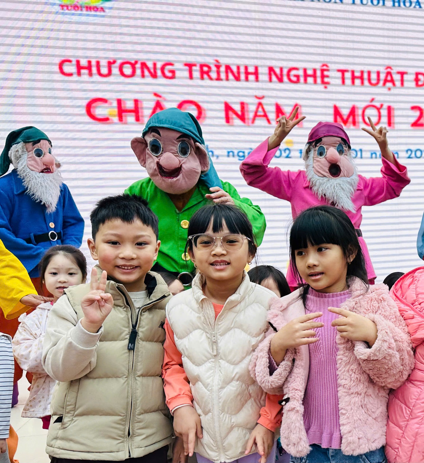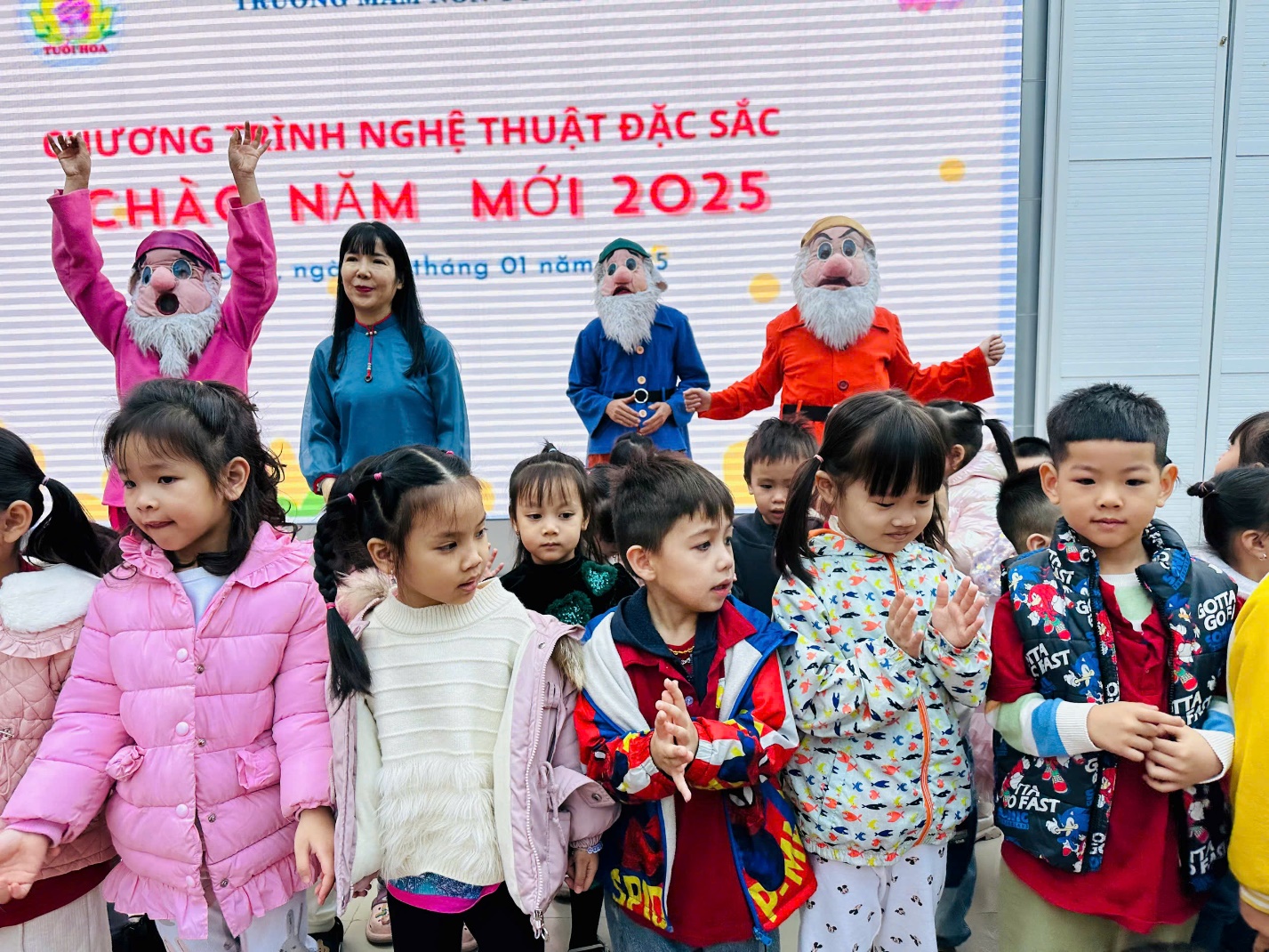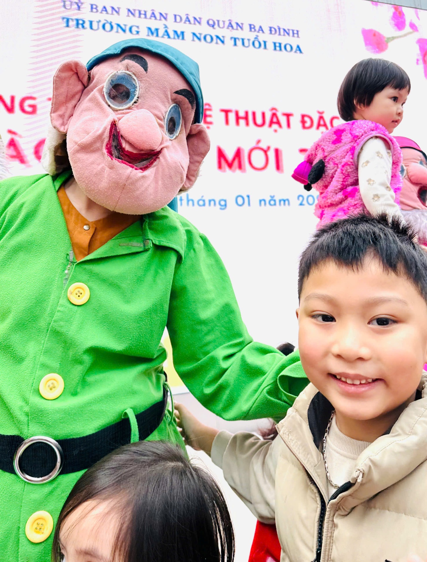 Trẻ được giao lưu với nhiều Nghệ sỹ Nhà hát Múa rối Trung ương. Các con biểu lộ sự ngạc nhiên, trầm trồ thích thú qua các tiết mục : Đấu vật, nàng Bạch Tuyết và bảy chú lùn, múa công, điệu múa làng quê .