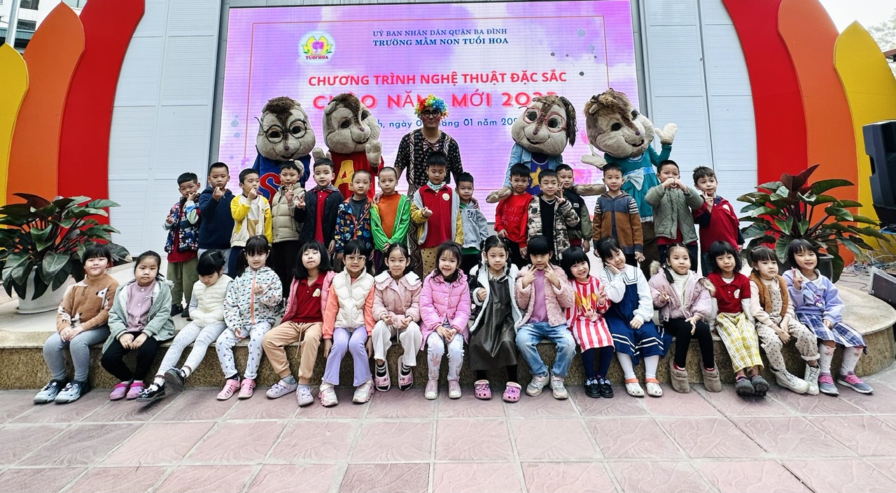 Các bạn nhỏ lớp A4 giao lưu tạo dáng cùng Sóc Siêu Quậy