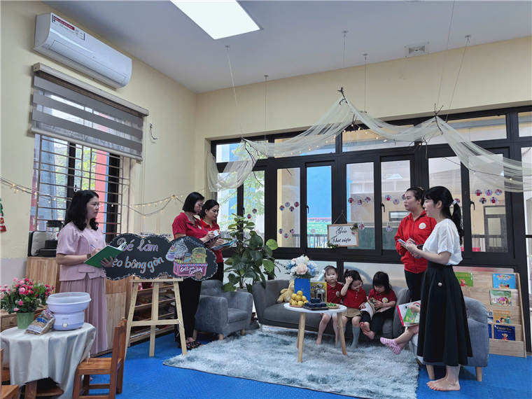 Hai cô giáo đã tích cực xây dựng nhiều không gian xanh trong lớp, sắp xếp môi trường, bố trí các góc chơi khoa học, hợp lý, sáng tạo, đảm bảo tính thẩm mỹ; thiết kế các bài tập giúp trẻ phát triển; lựa chọn, sưu tầm và sử dụng các nguyên vật liệu tái chế từ thiên nhiên để xây dựng môi trường giáo dục phát huy tính tích cực của trẻ vừa tạo được sự thân thiện với môi trường, vừa tạo không gian mở, xanh, sạch đẹp, an toàn.
