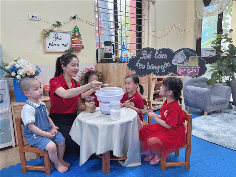 Hình ảnh các con làm kẹo bông gòn
